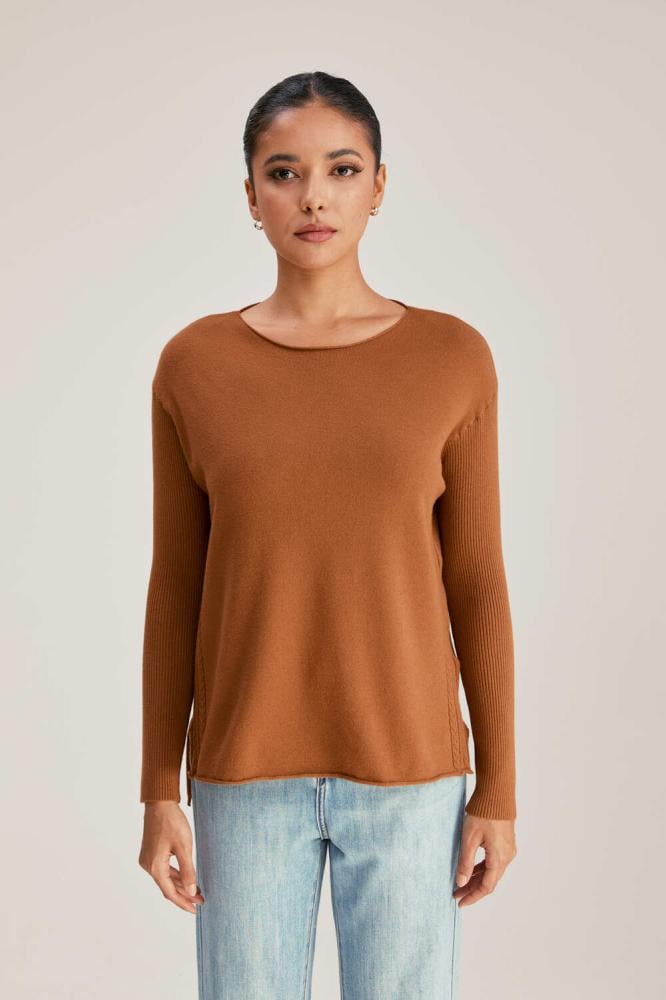 اقتني هذه البلوزة الشتوية للتألقي بإطلالة ناعمة . مصممة بقصة واسعة غير متساوية من أسفل ، وتتميز بأكتاف منسدلة وأكمام ضيقة نسقيها مع بنطلون جينز لمظهر عصري