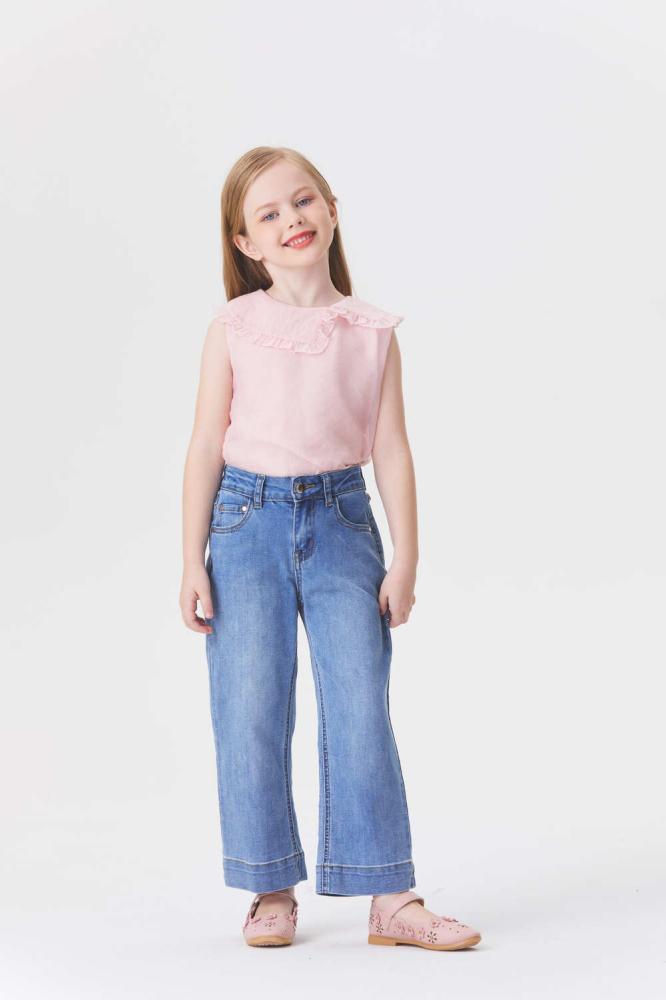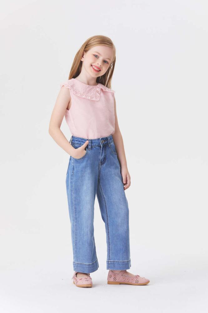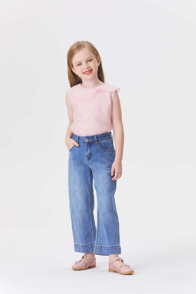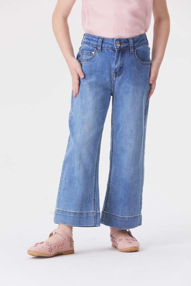 امنحي صغيرتك إطلالة كاجوال مع هذا البنطلون بتصميم بخصر مرتفع وبأرجل واسعة ويأتي بجيوب وسحاب للإغلاق