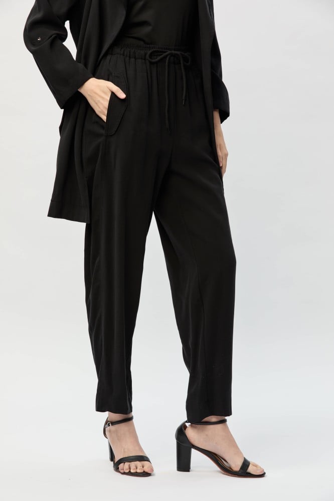 بنطلون بقصة إنسيابية يتميز بتصميم كلاسيكي فضفاض بقصة ساق واسعة، ويأتي بجيوب عملية.يمكن تنسيقه مع ملابس كاجوال أو رسمية.