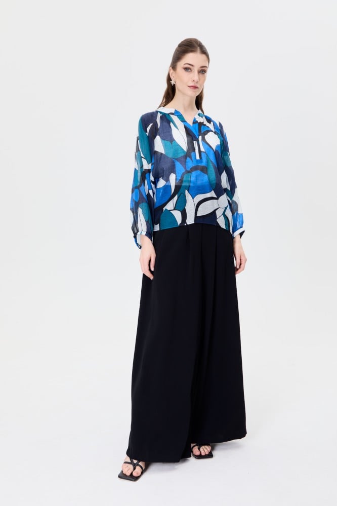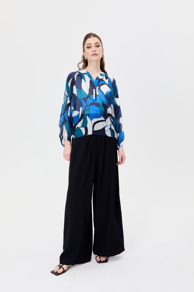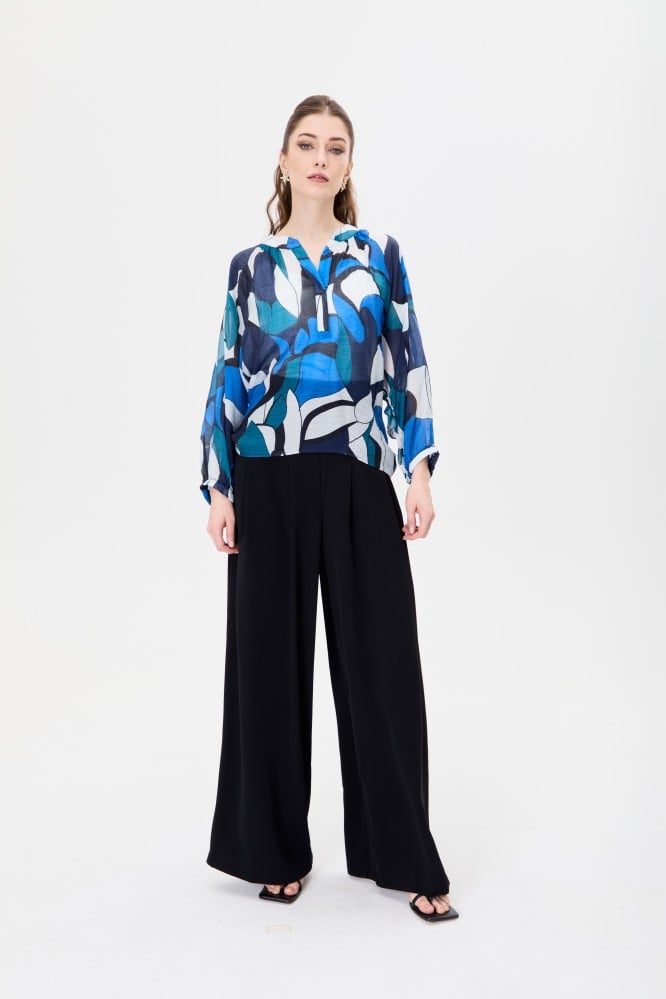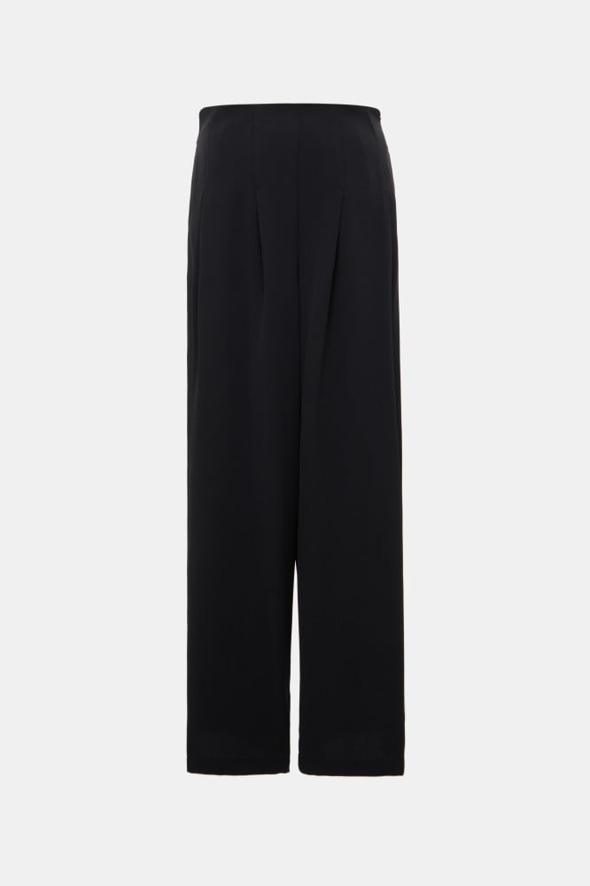 عززي من ستايلكِ وتمتعي بإطلالة مميزة باقتناء هذا البنطلون الرائع بقصة أرجل واسعة بخصر مرتفع وبسحاب مخفي وجيوب ومزين بكسرات من الأمام ، ارتدية مع بلوزة متناسقة للتتألقي.