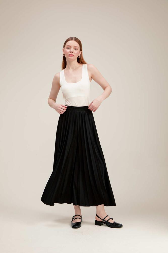 اكتشفي سحر الأناقة مع بنطلون بليسيه أسود الذي يمنحكِ مظهرًا عصريًا ومريحًا في آن واحد، حيث إنه تم تصميمه بشكل متقن كما أنه يأتي بحزام مطاطي، مما يجعله خيارًا مثاليًا لإطلالة أنيقة ومريحة طوال اليوم.