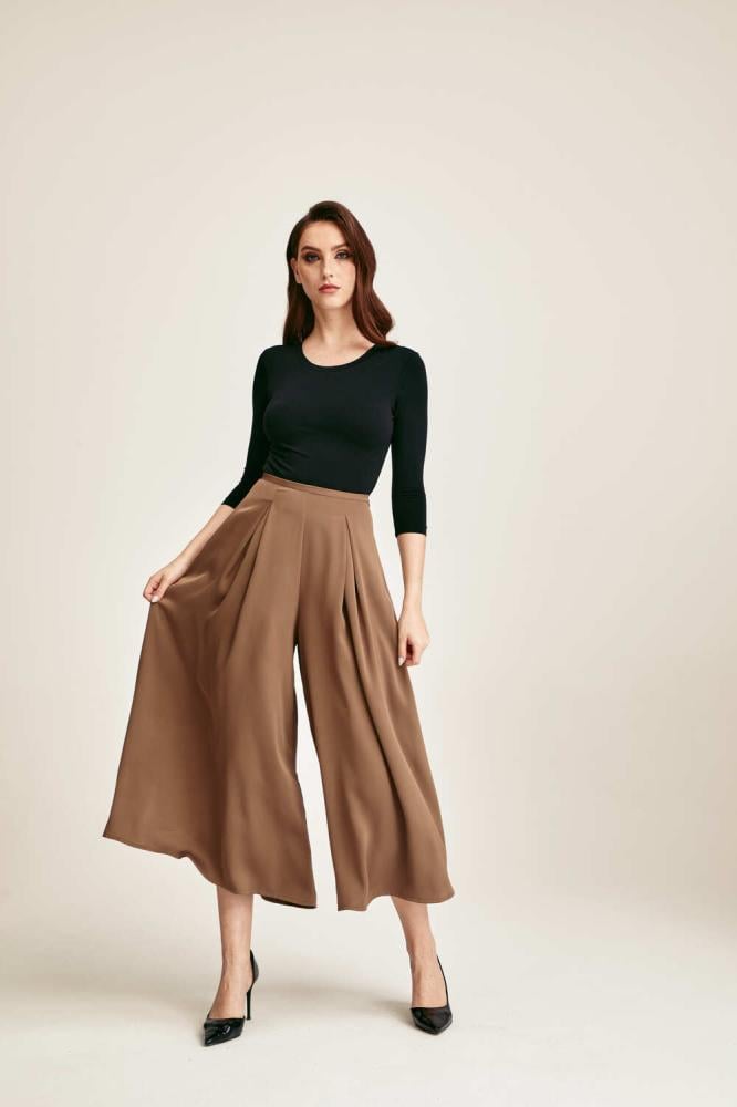 - يتميز بكسرات أمامية ناعمة وتضيف شكل جمالي مميز وتمنح البنطال حجماً وحركة جذابة.