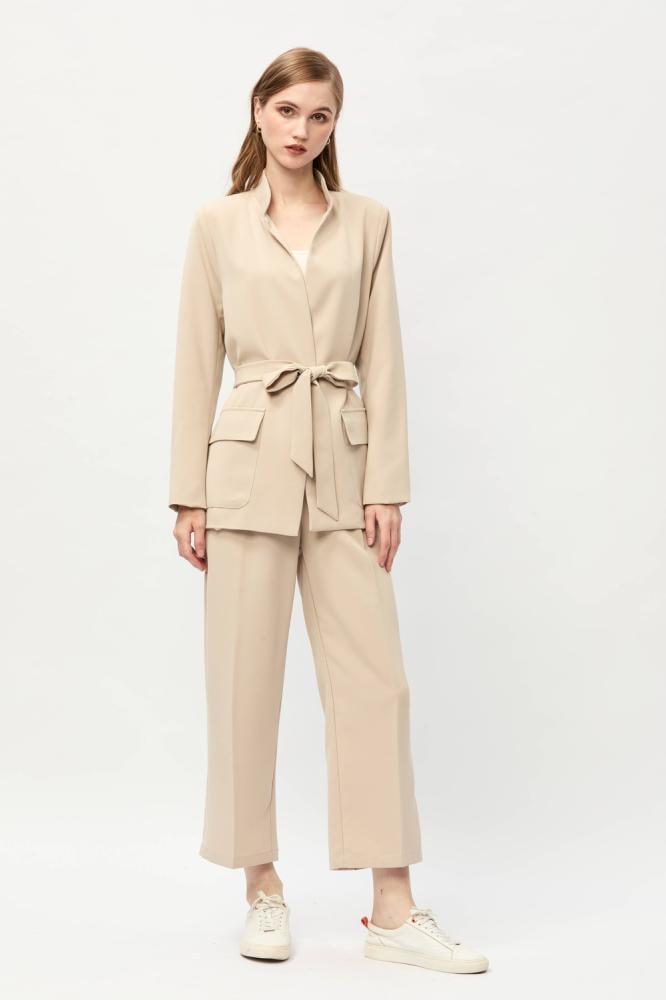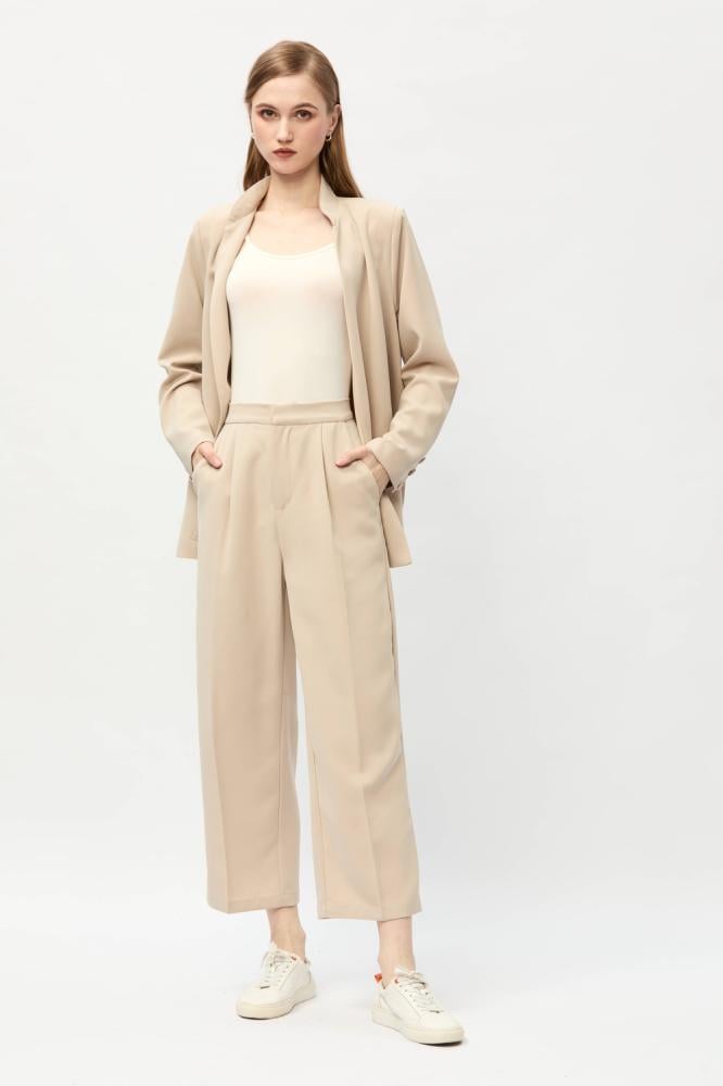 اختاري هذا البنطلون الرسمي بخامة مريحة لاطلالة عملك، مصمم بقصة مستقيمة بجيوب وخصر عالي بسحاب وجيوب.