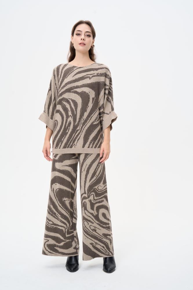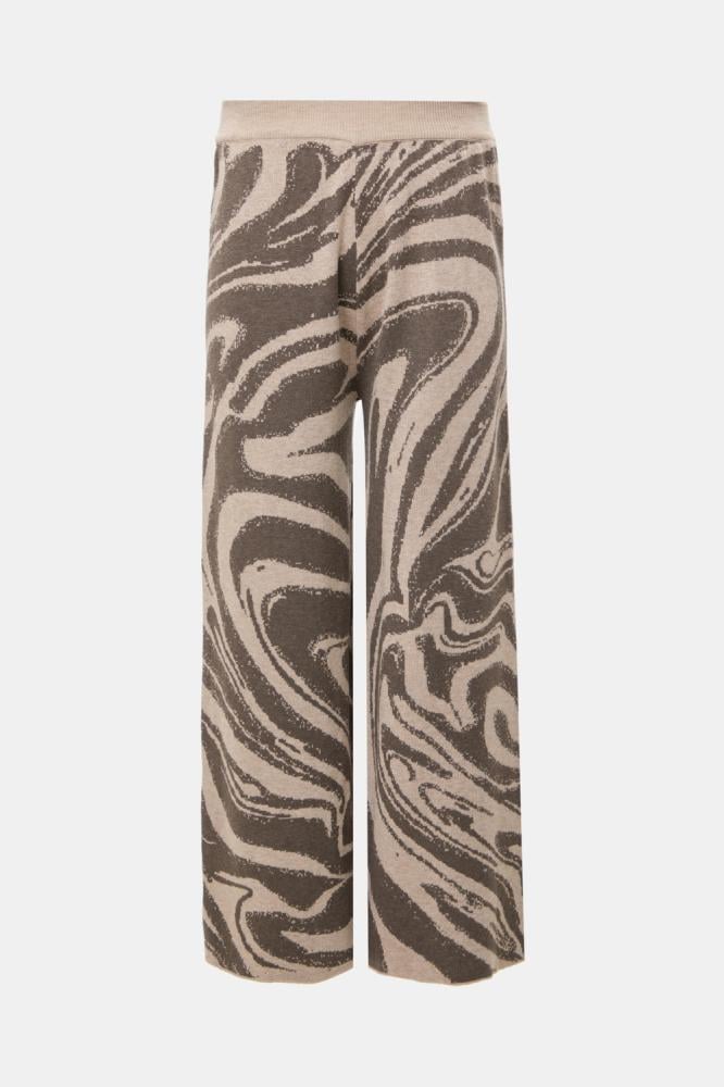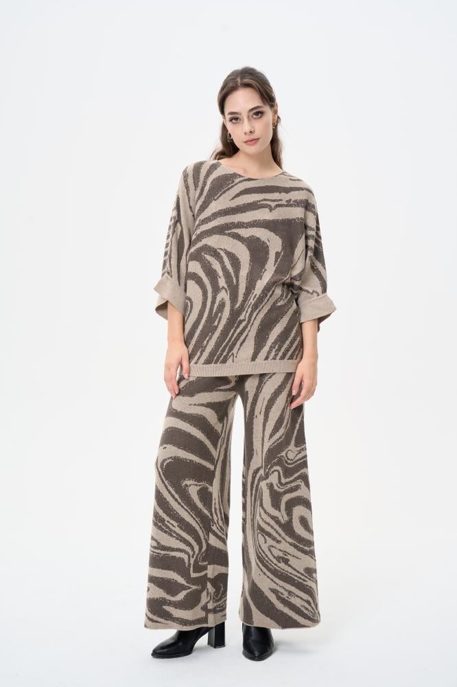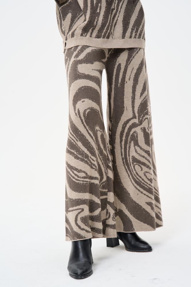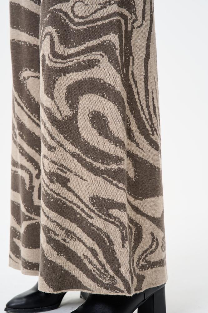 أضيفي هذا القطعة المميزه لمجموعة ملابسك الشتوية وتمتعي بأفضل شعور بالدفء والأناقة أثناء طلعاتك الخارجية في الأجواء الباردة ، بنطلون محبوك مزدان بنقشة مموجة بتصميم بخصر مطاطي وأرجل واسعة