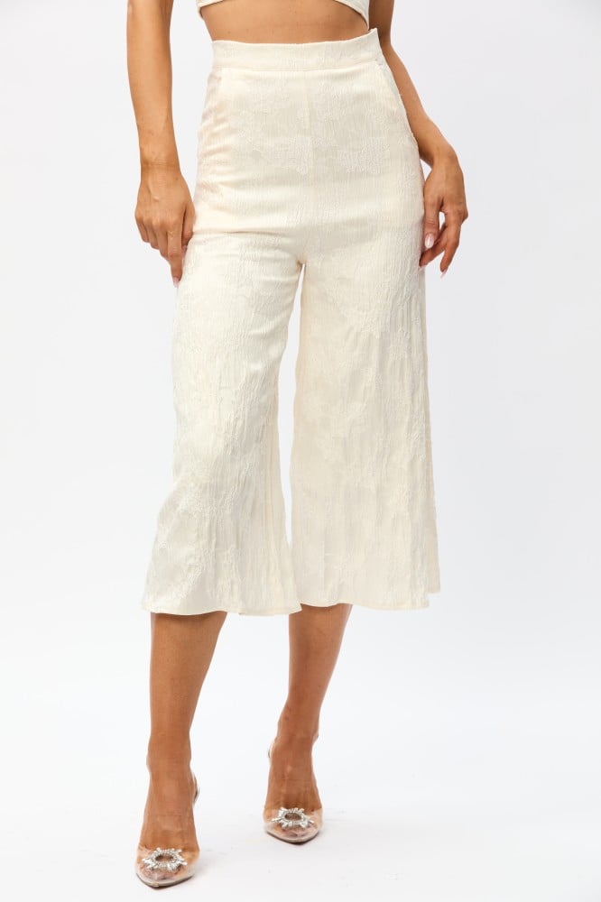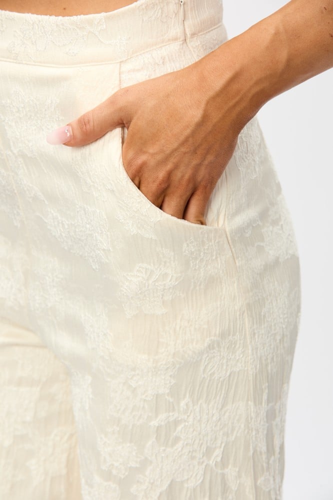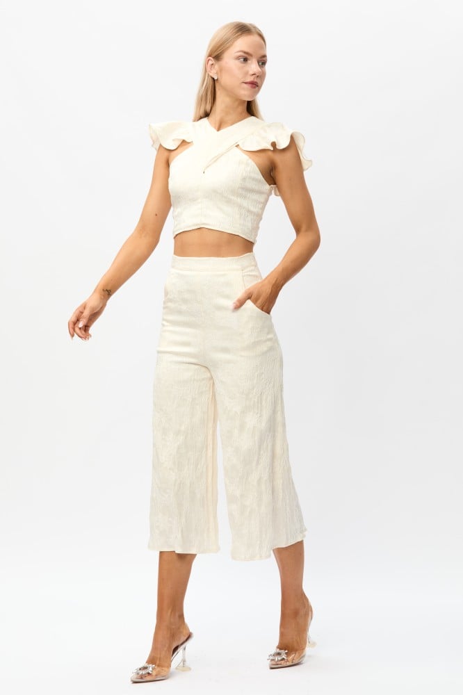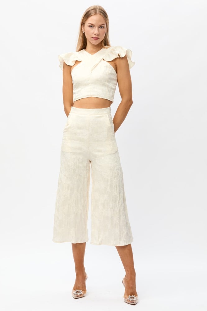 بنطلون انيق بخصر مرتفع وبأرجل واسعة ، مصمم بسحاب مخفي للإغلاق وجيوب ، نسقيه مع بلوزة مماثله للوك شيك.