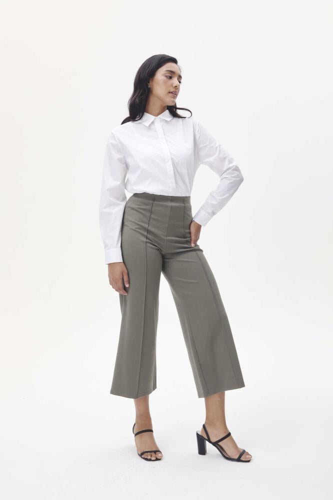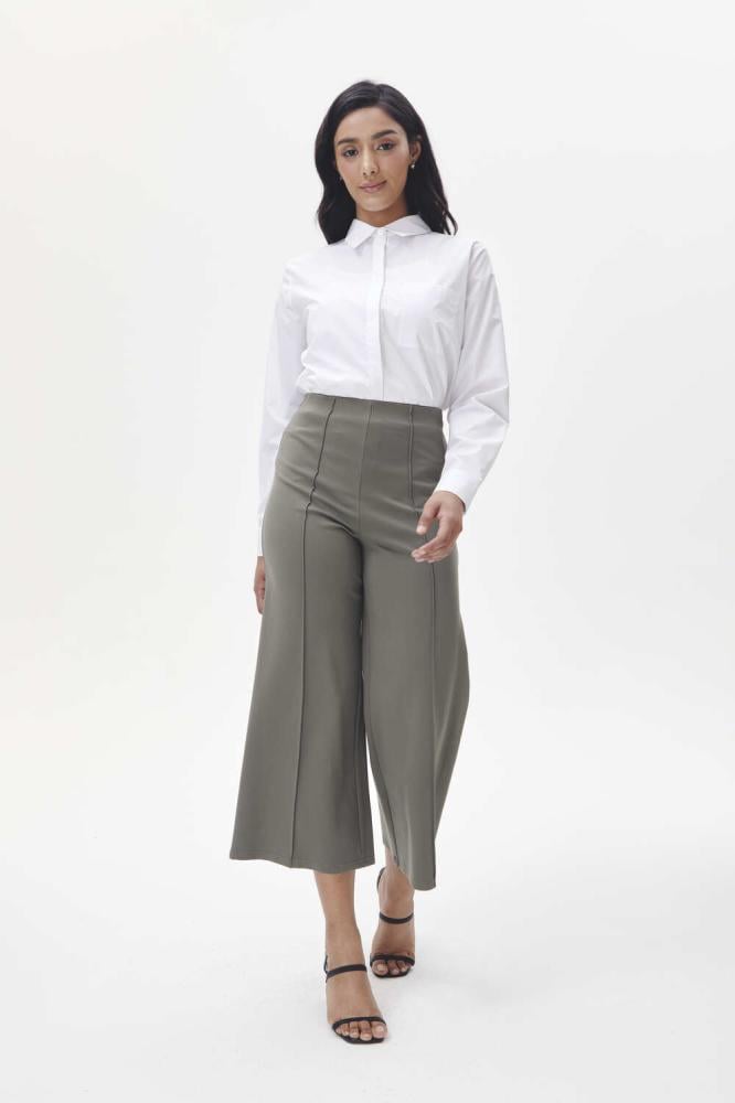 لإطلالة كلاسيكية أنيقة، انتقي بنطلون مصمم بخصر مرتفع مطاطي وقصة ساقين واسعتين يمنحك مظهرًا جذابًا يناسب مختلف الأوقات ، يمكنك تنسيقه مع قميص لمظهر أنيق