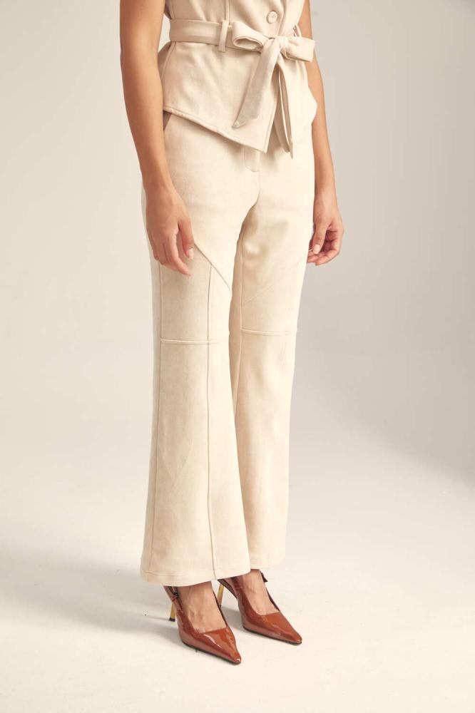 بنطلون بتصميم كلاسيكي يأتي بخصر مرتفع وقصة ساق واسعة من الأسفل، بجيوب وسحاب مخفي للإغلاق ، صُنع من قماش مطاطي لضمان المقاس المريح