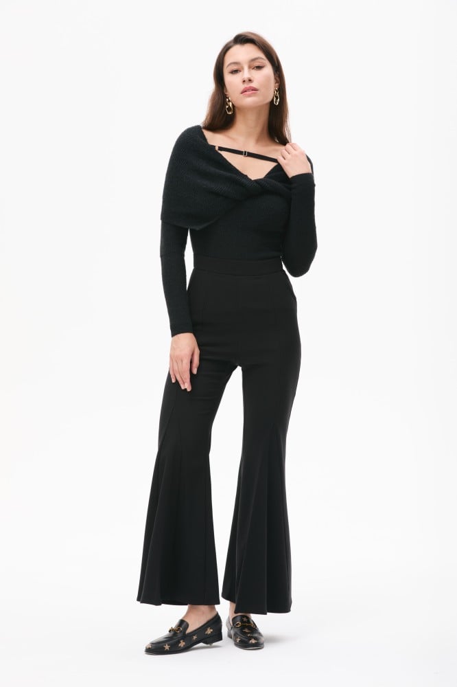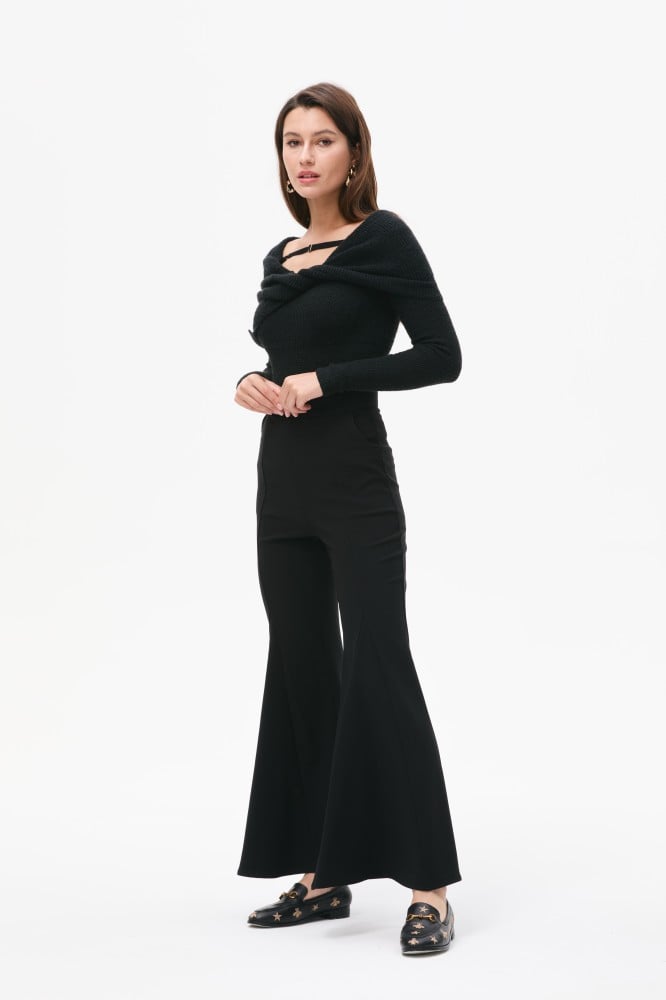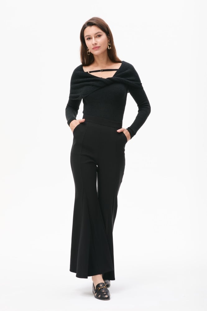 لإطلالة كلاسيكية متفردة، بنطلون بتصميم بخصر مرتفع وبقصة واسعة من الأسفل، ويتميز بسحاب مخفي للإغلاق منن الخلف وبجيوب ،كما يمكنك تنسيقه بلوزة أو قميص للوك جذاب