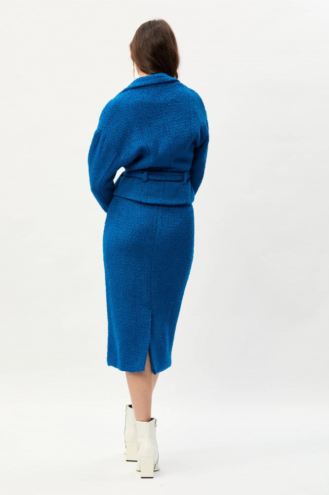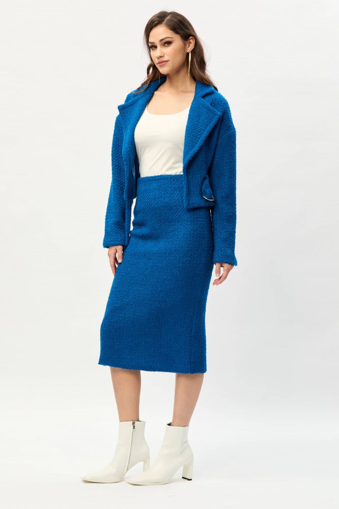 لمظهر رسمي جذاب اختاري تنورة شتوية بتصميم بقصة مستقيمة وبسحاب مخفي للإغلاق ومزينة بفتحة جذابة من الخلف. ويُمكنكِ تنسيقها جاكيت مماثل لمظهر أنيق.