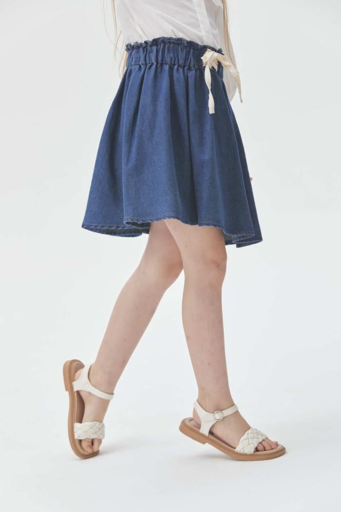 اختاري لصغيرتك تنورة جينز بخصر مطاطي برباط لتمنحيها إطلالة عصرية وأنيقة في نفس الوقت، حيث تم تصميم هذه التنورة بعناية لتناسب كل تفاصيل الجمال والراحة، فهي تجمع بين الأسلوب العصري والراحة الفائقة بفضل تصميمها الأنيق وخامتها المريحة.