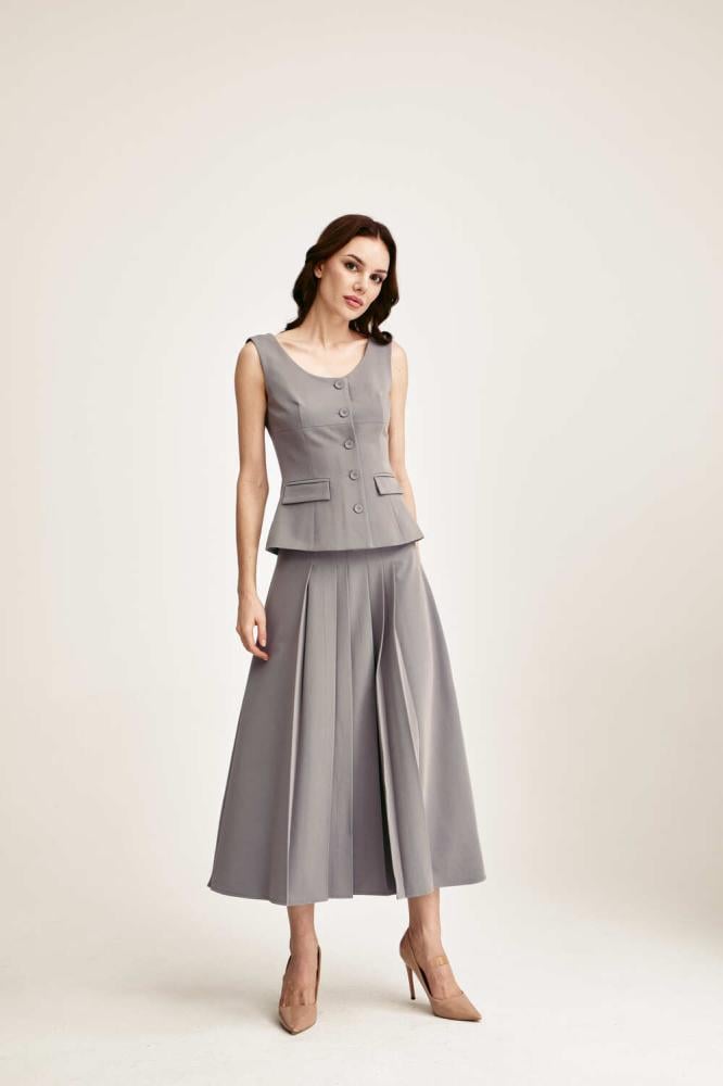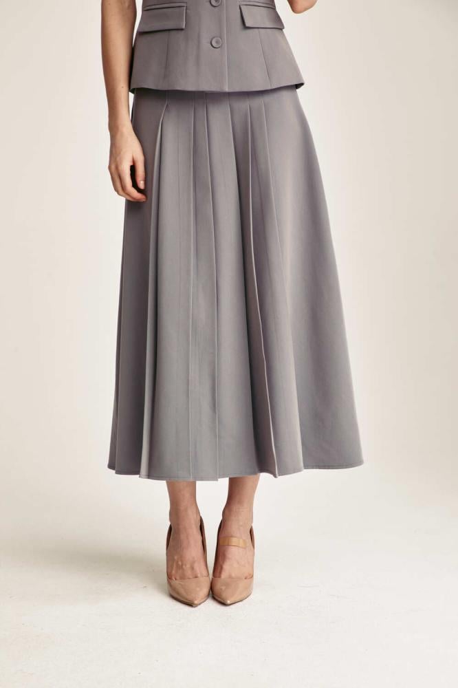 تنورة ميدي أنيقة بكسرات تضفي حركة وانسيابية بسحاب مخفي للإغلاق. قطعة مثالية لتنسيقاتك الرسمية والكاجوال، تجمع بين الراحة والأناقة بأسلوب عصري متجدد.