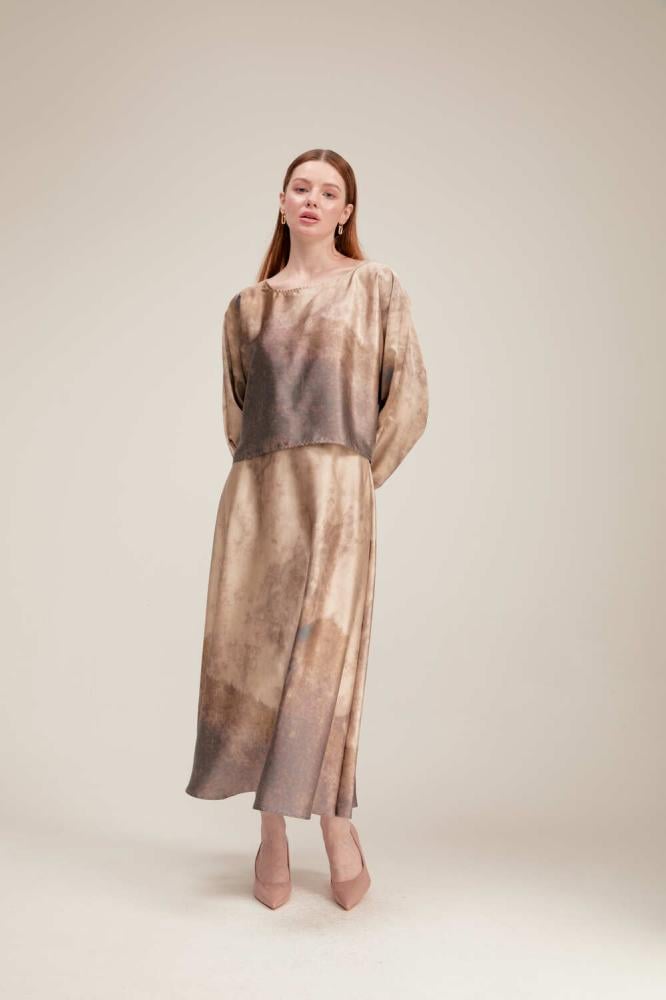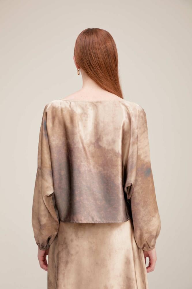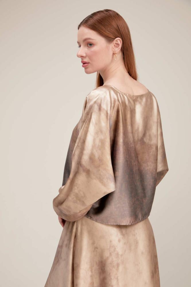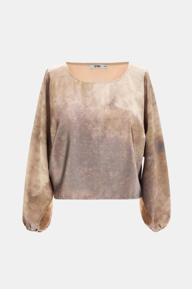 أضيفي لمسة مفعمة بالحيوية إلى إطلالتك ، بلوزة بتصميم انسيابي مفعم بالأنوثة وتتميز بياقة مستديرة وبأكمام طويلة بأساور مطاطيه بتصميم بقصة واسعة