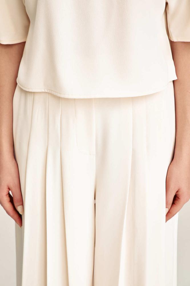 أضيفي لمسة عصرية لتشكيلة ملابسكِ باقتناء هذه البلوزه الأنيقة ، مصممة بياقة مستديرة وبأكمام قصيرة ، ومزينة بتطريزات ناعمة عند الياقة لتمنحكِ إطلالة انثوية ناعمة