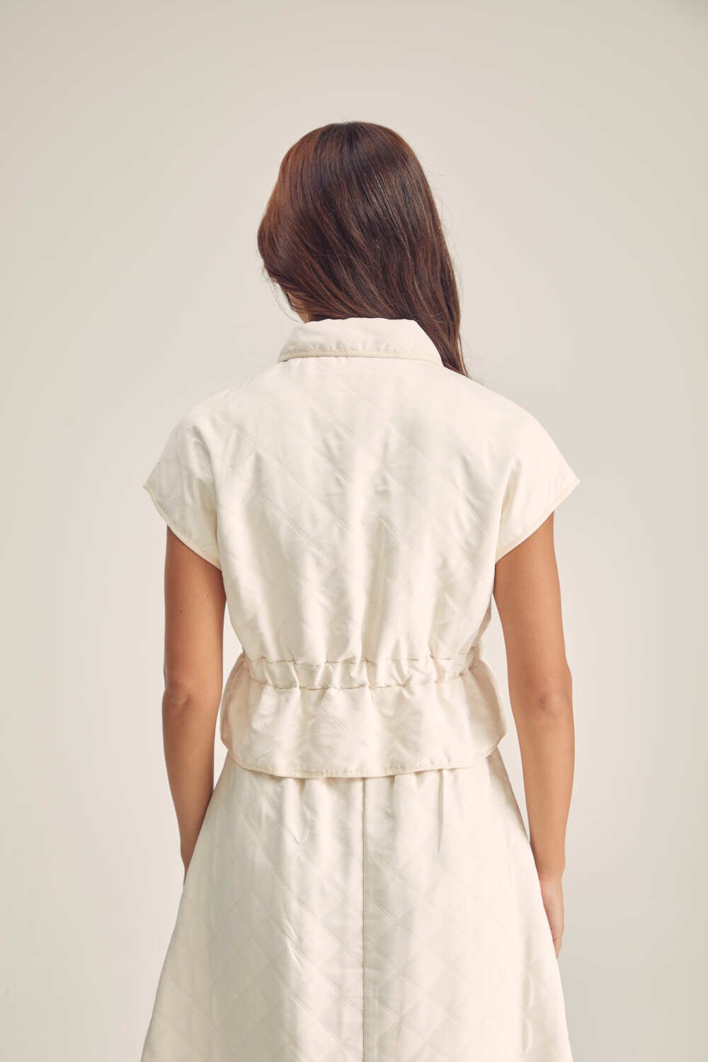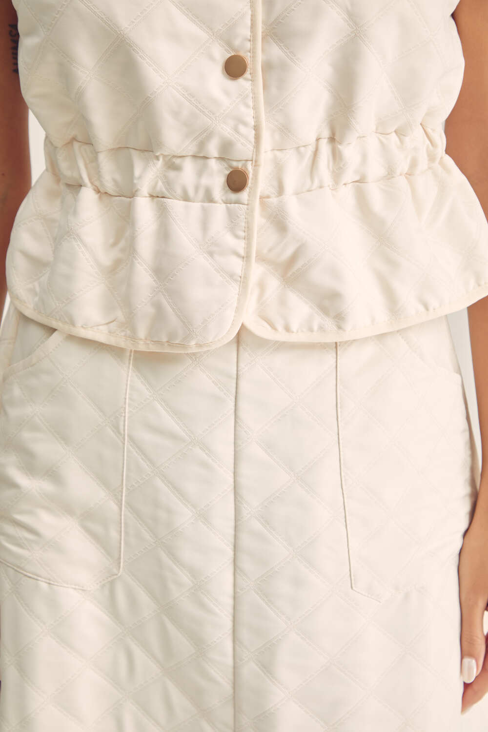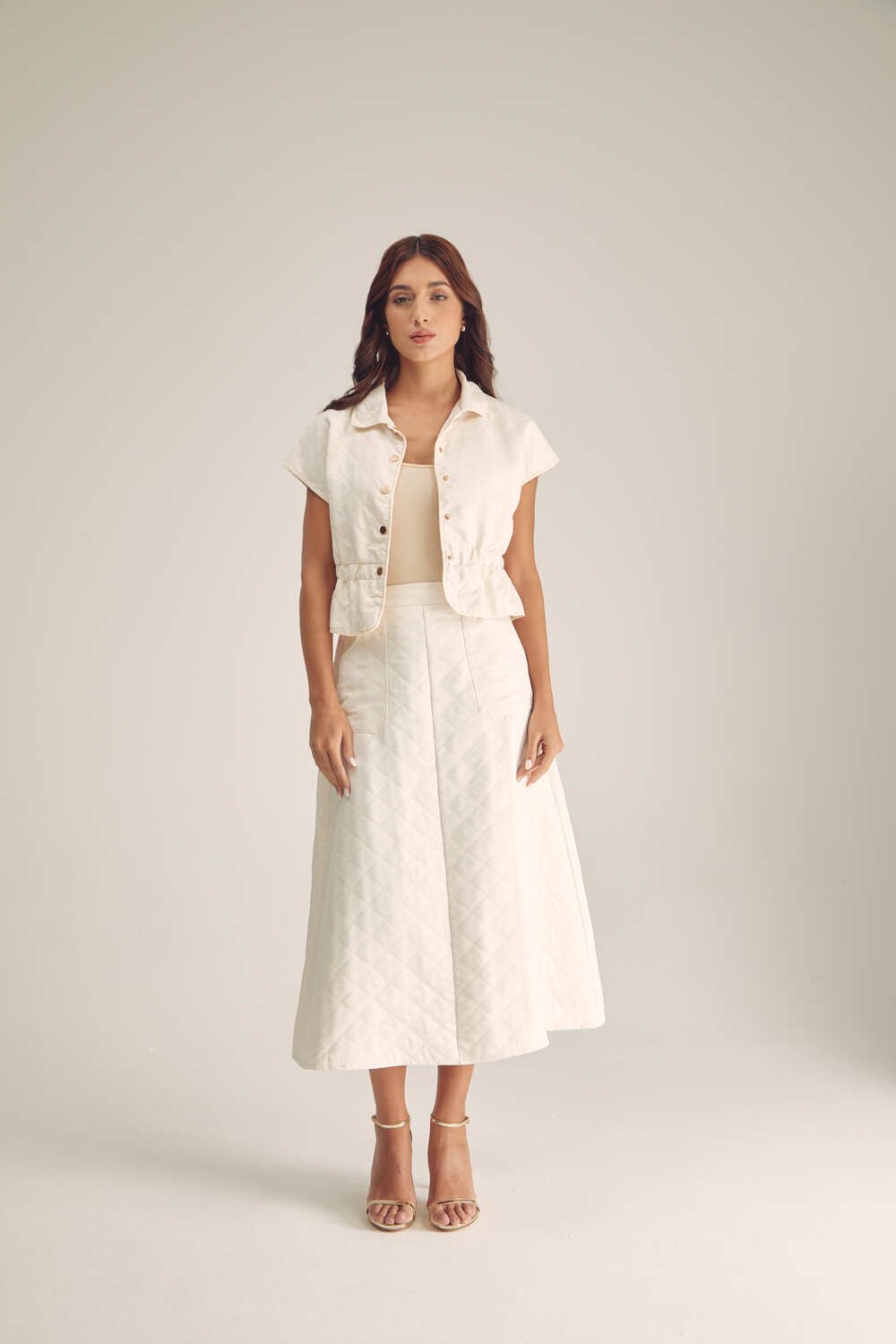 أضيفي لمسة من الرقي والأناقة إلى إطلالتكِ مع هذا الجاكت الأنيق . يتميز بأزرار معدنية للإغلاق وبخصر مطاطي ، يمكنك تنسيقة مع تنورة مماثلة لمظهر عصري