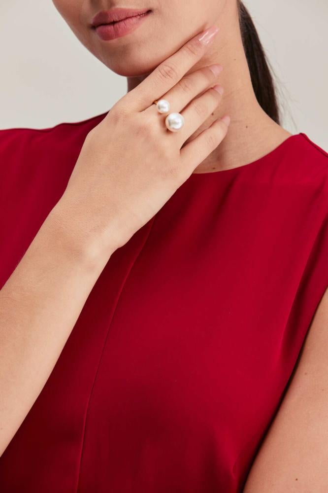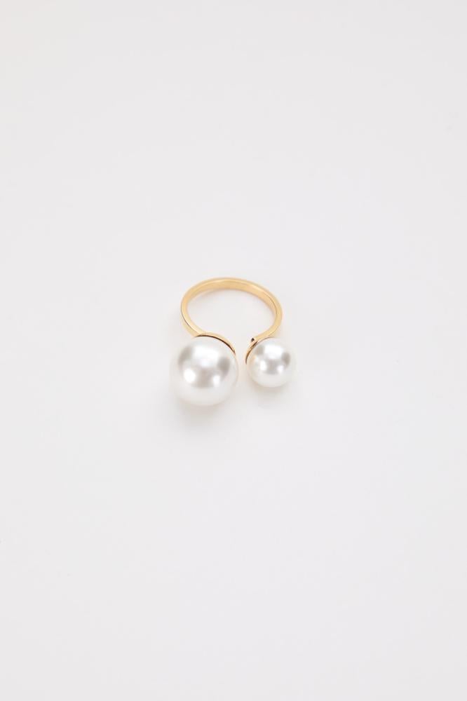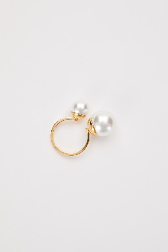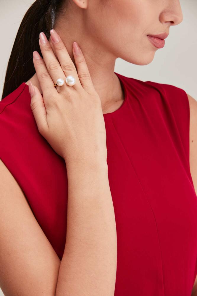 خاتم بتصميم بسيط برأس مزدوجة و مزين من الأطراف باللؤلؤ البراق.