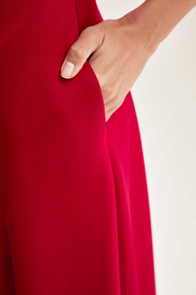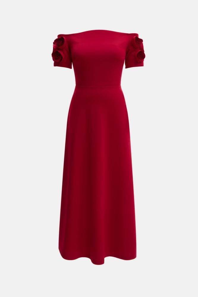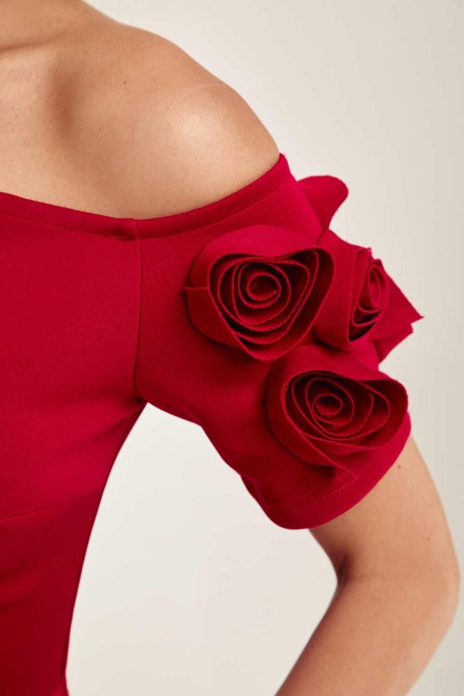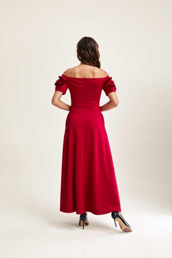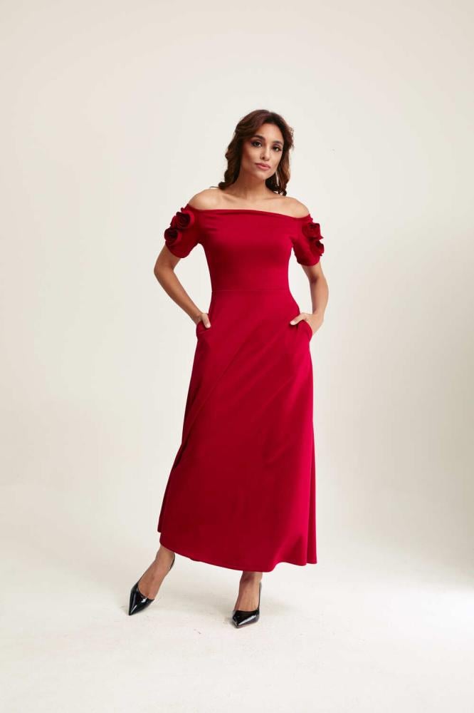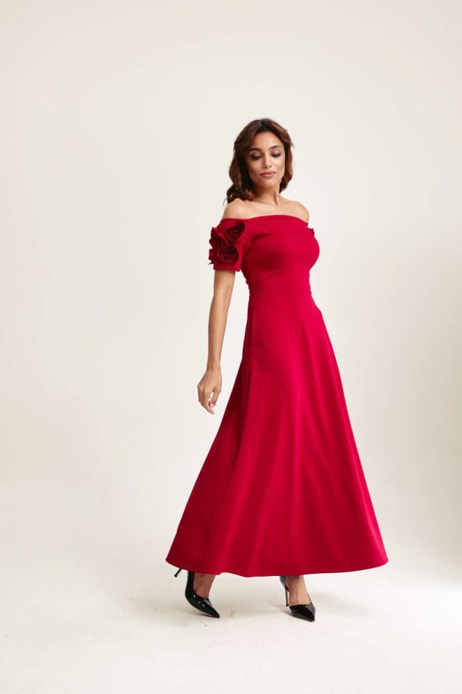 فستان بتفاصيله الدقيقة يمنحكِ إطلالة لافتة، إذ صُمّم من قماش فاخر ينسدل بانسيابية على الجسم ويبرز جمال القوام برقي.ويزدان بوردة بارزة على الكتف تضيف لمسة راقية للتصميم، سّقيه مع حذاء بكعب مرتفع بلون متناسق لإكمال الإطلالة،