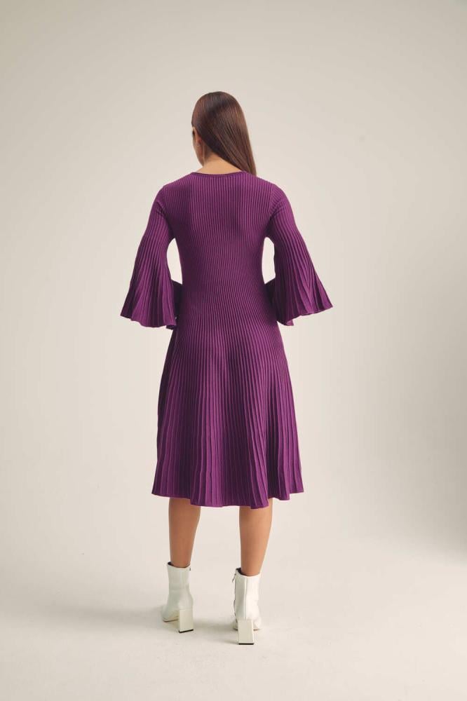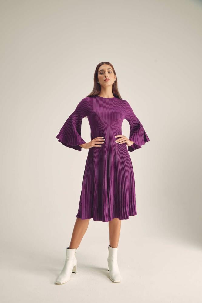 تألقي بإطلالة مفعمة بالأنوثة بفستان مزين بنقوش مشجرة ، بتصميم بياقة مستديرة وبأكمام جرس ، يمكنك تنسقة مع إكسسورات لطلة مبهرة