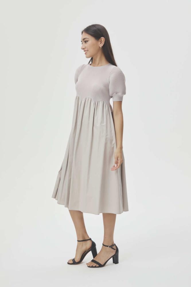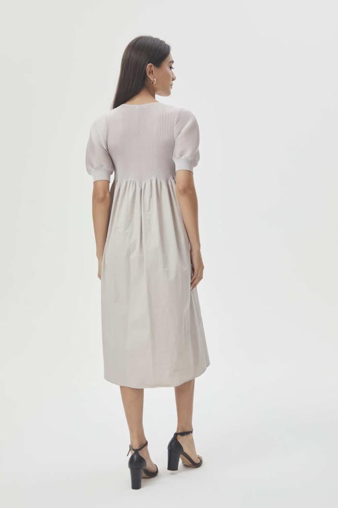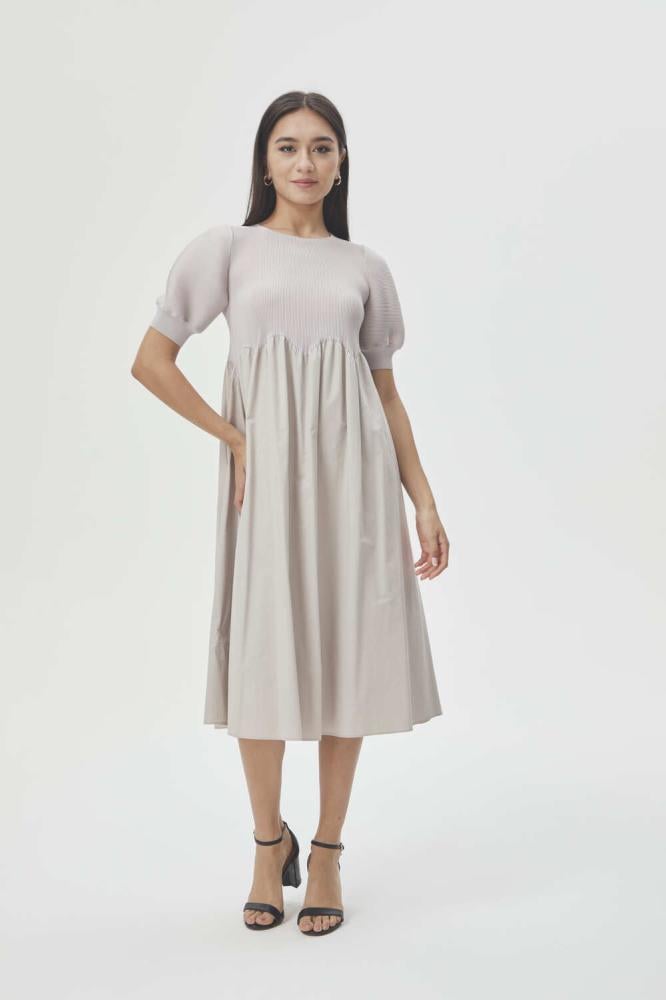 لإطلالة ناعمة مفعمة بالأنوثة، انتقي فستان بقصة ناعمة بتصميم بياقة مستديرة وبأكمام قصيرة ،وبقصة واسعة نسقيه مع اكسسورات للوك هادئ
