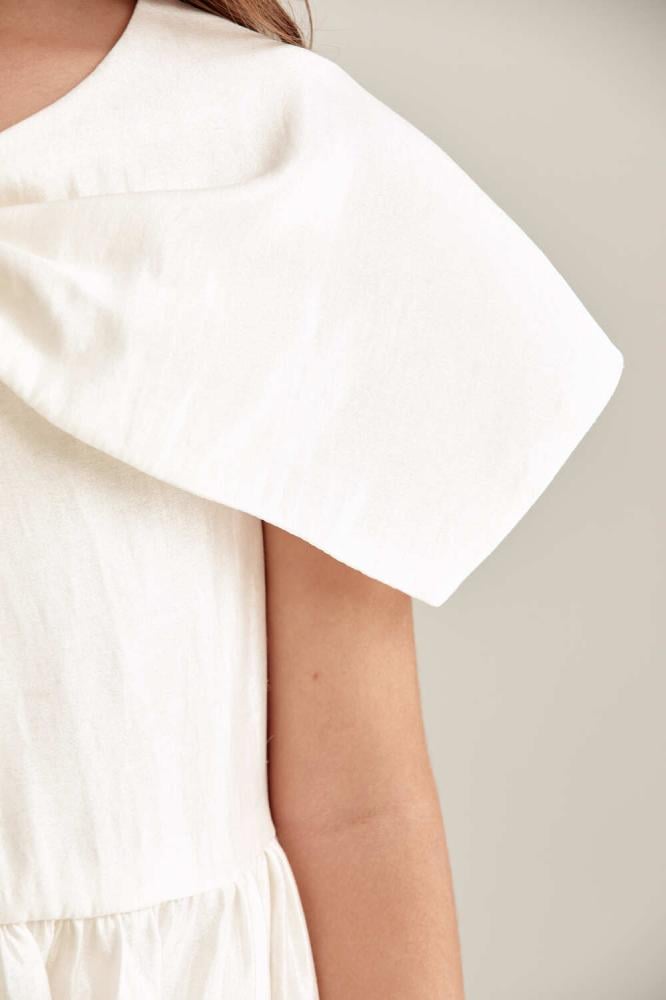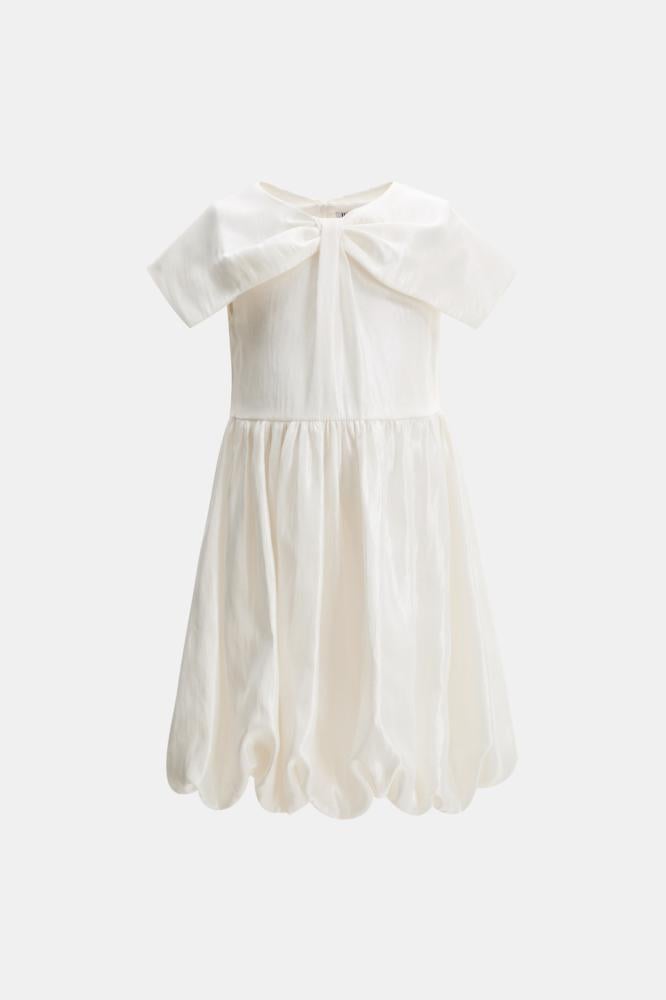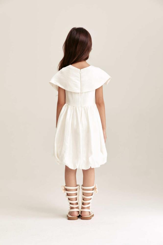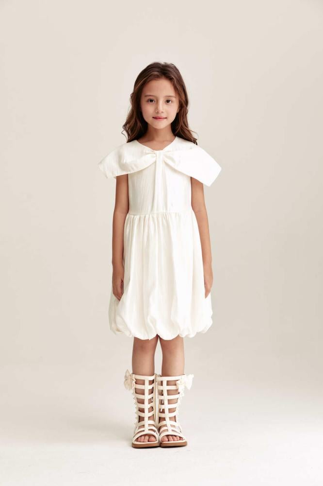 فستان بناتي باللون الكريمي بقصة منفوشة ناعمة يمنح صغيرتك إطلالة هادئة وراقية للمناسبات .