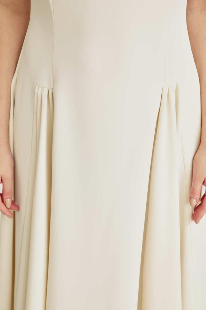 اكتشفي جمال البساطة في فستان بطيات يتميّز بقصّة ناعمة جذابة وأنثوية بتصميم يُبرز أناقتك بأسلوب عصري وراقي، كما يتميز أيضًا بياقة مربعة تمنحك طابع كلاسيكي جذاب، وبدون أكمام لراحة وأناقة مميزة، بالإضافة إلى وجود على طيات ناعمة على الجانبين؛ لتضيف لمسة ساحرة وحركة ناعمة تُبرز أنوثتك بكل رقي.