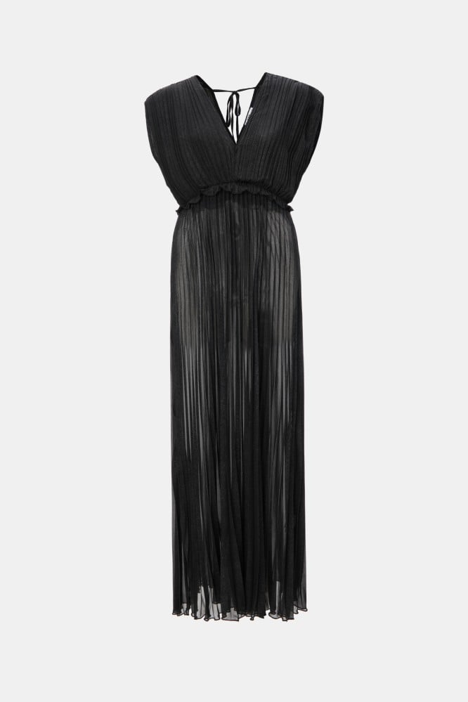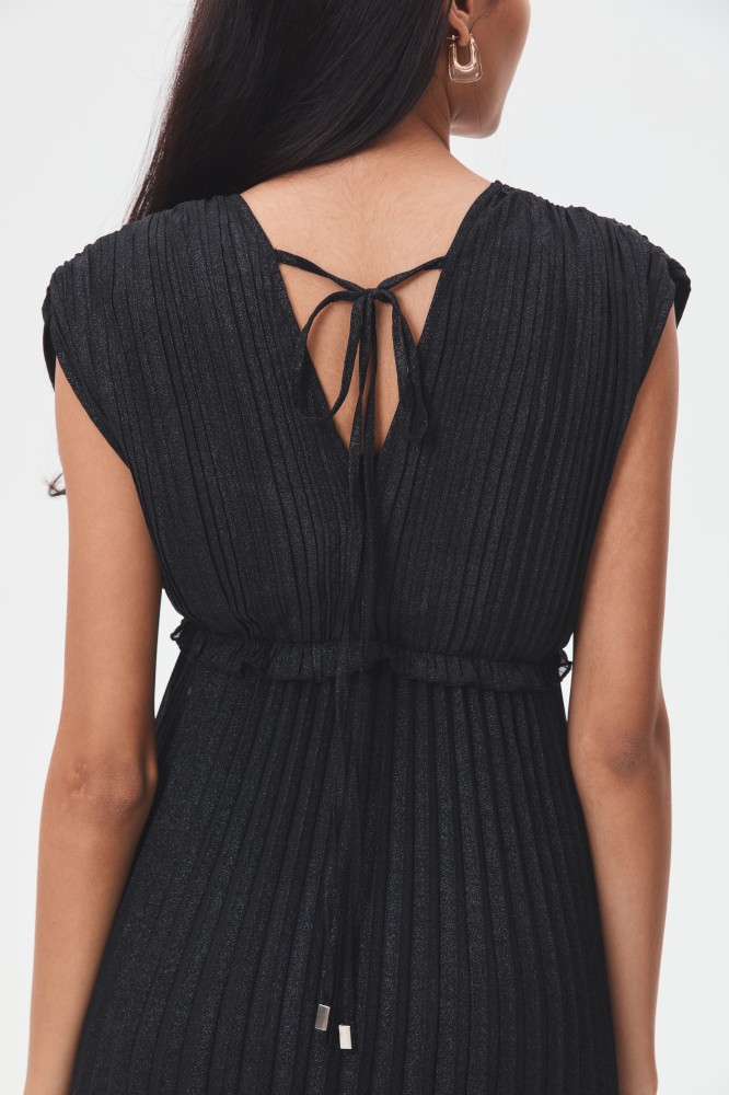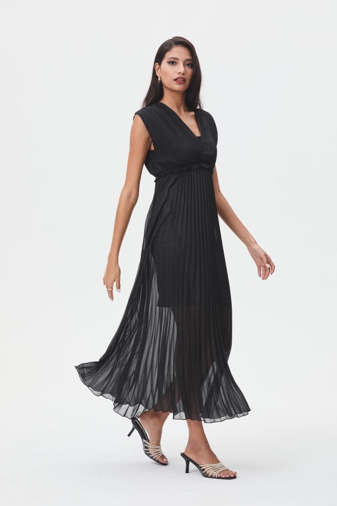 انعمي بإطلالة جذابة في المناسبات المسائية مع هذا الفستان الجذاب بطيات بليسيه ، مصمم بفتحة رقبة على شكل حرف V وخصر مزموم بتفاصيل كشكش ،ويمكن تنسيقه مع إكسسوارات جذابة لمظهر ساحر.
