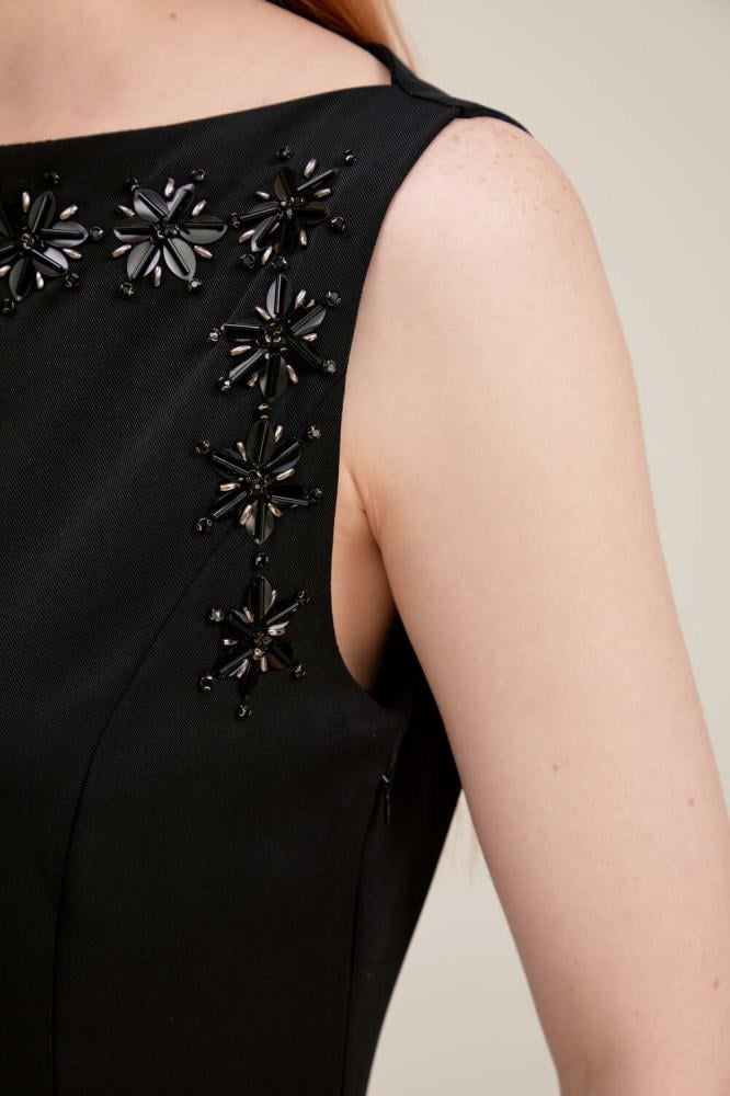 - تفاصيل التصميم: ياقة قارب مزينة بالخرز