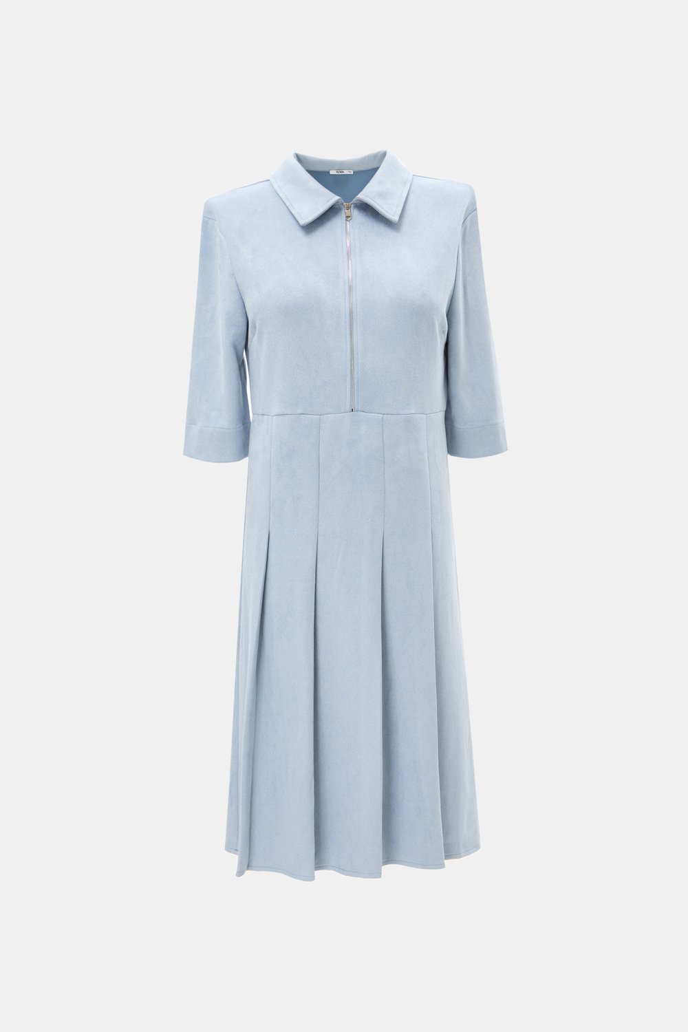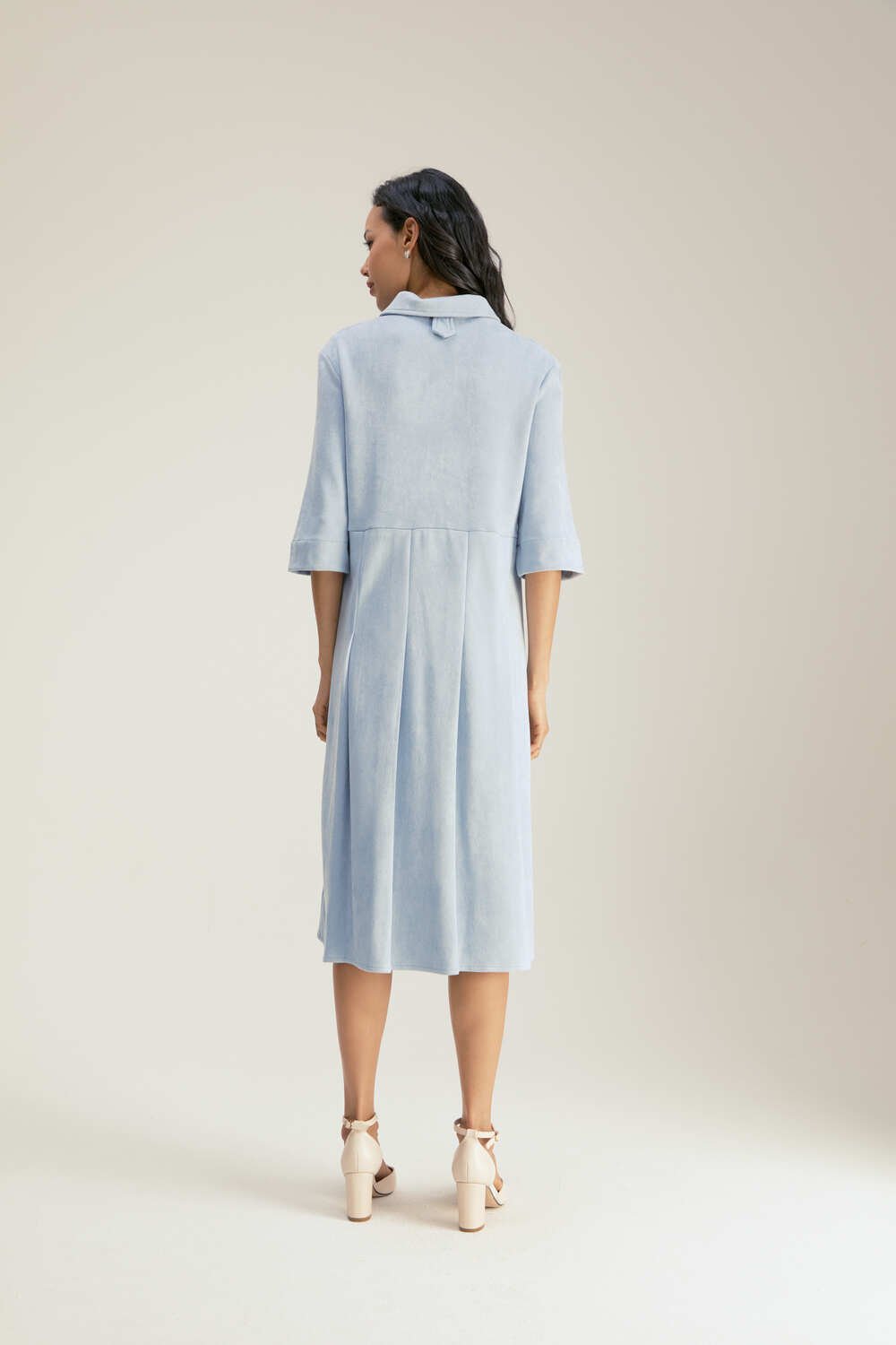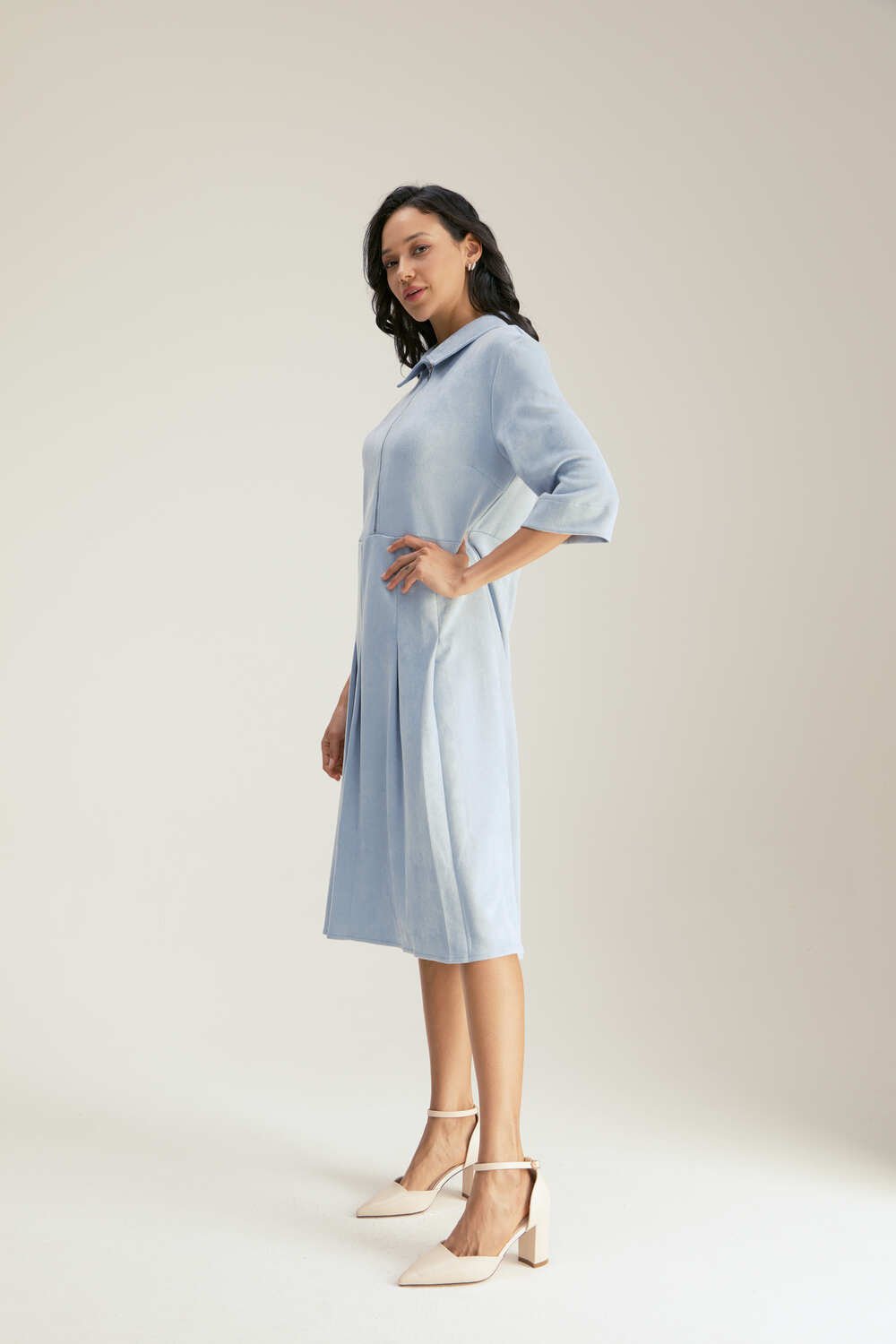 تميزي بإطلالتك بإرتداء هذا الفستان الأنيق لتنعمي باطلاله مفعمة بالأنوثة مصمم بطول متوسط ، بياقة مدببة وبأكمام متوسطة الطول ويأتي بسحاب للإغلاق وبقصة مزدانة بكسرات