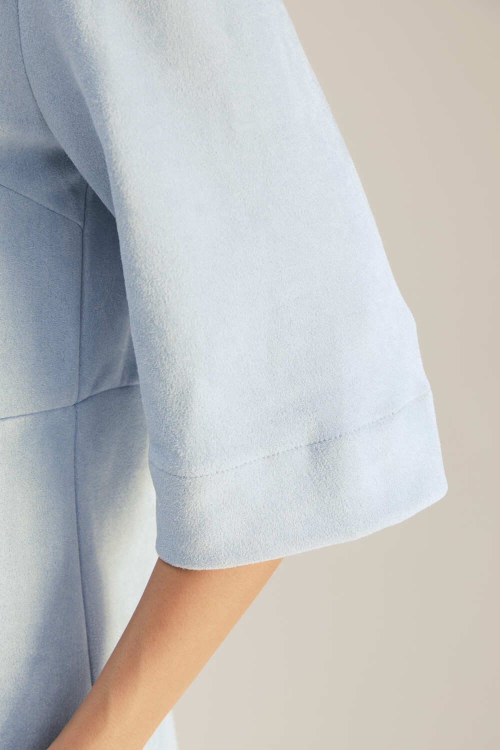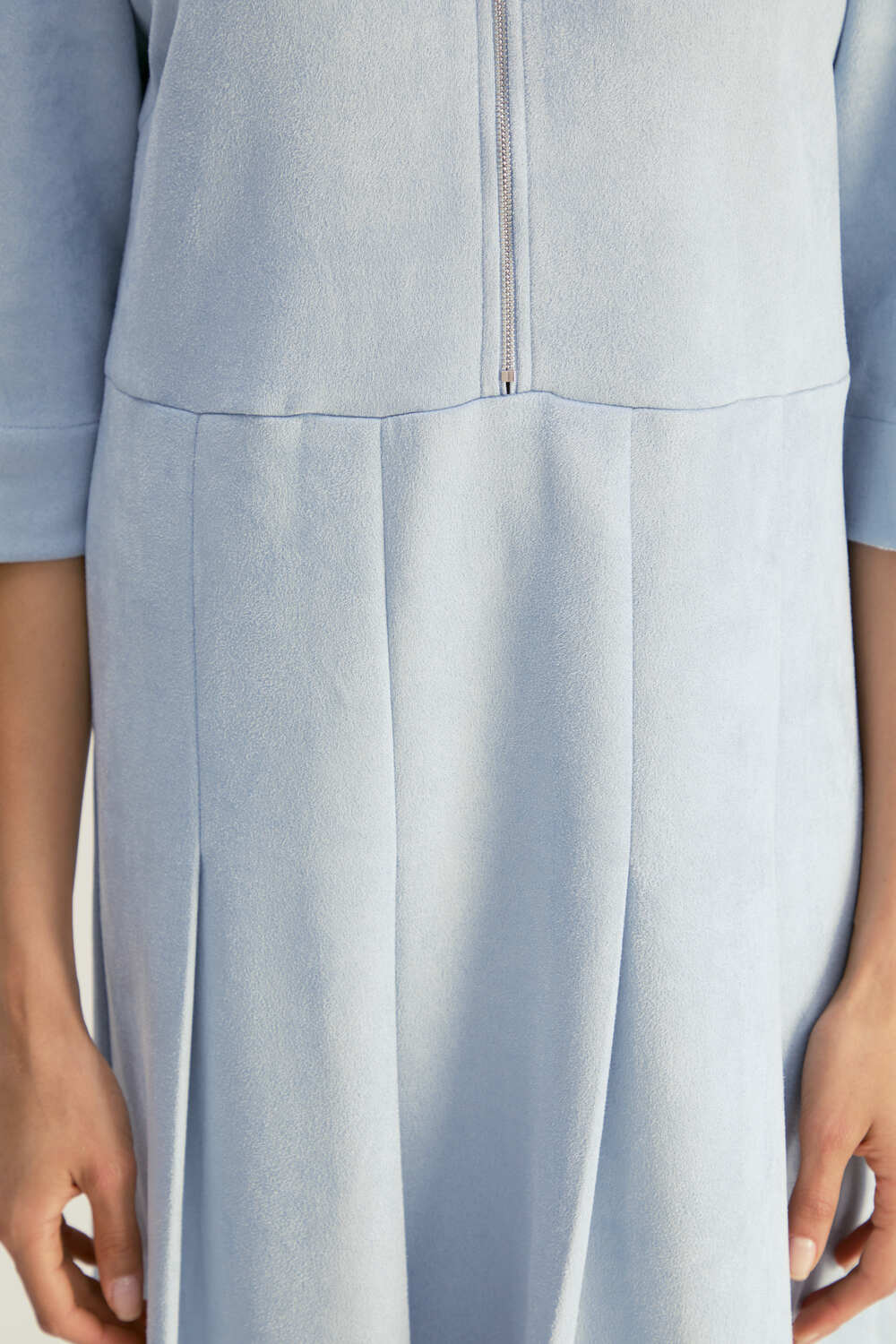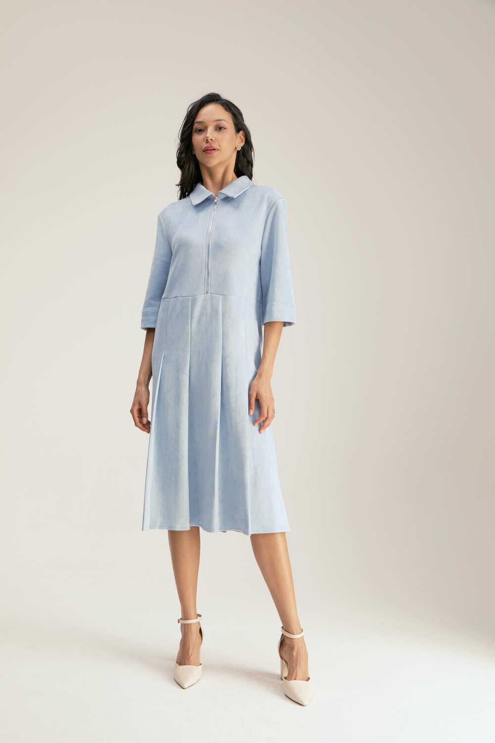 تميزي بإطلالتك بإرتداء هذا الفستان الأنيق لتنعمي باطلاله مفعمة بالأنوثة مصمم بطول متوسط ، بياقة مدببة وبأكمام متوسطة الطول ويأتي بسحاب للإغلاق وبقصة مزدانة بكسرات