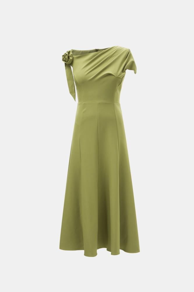 فستان بكتف واحد لمسة فنية رفيعة تتجلى في تفاصيل الورود البارزة الرائعة، صُنِع بدقة من قماش الكريب ليبرز جمالية التصميم ويضيف تألقًا لأي مناسبة خاصة، يتميز الفستان بقصة أنيقة ذات رقبة بكتف واحد وأكمام قصيرة مما يحقق توازناً بين الأناقة والراحة، ويجعله اختيارًا فريدًا لمن يبحث عن فستان بكتف واحد يعزز إطلالته.