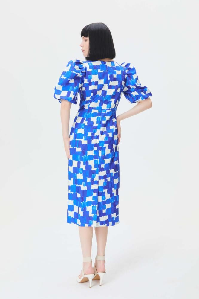 انعمي بإطلالة أنيقة في المناسبة مع هذا الفستان متوسط الطول يتميز بقصة كلاسيكية وأكمام منفوخة أبرزي جمال فتحة الرقبة ارتدائه مع قلادة مزينة باللؤلؤ.