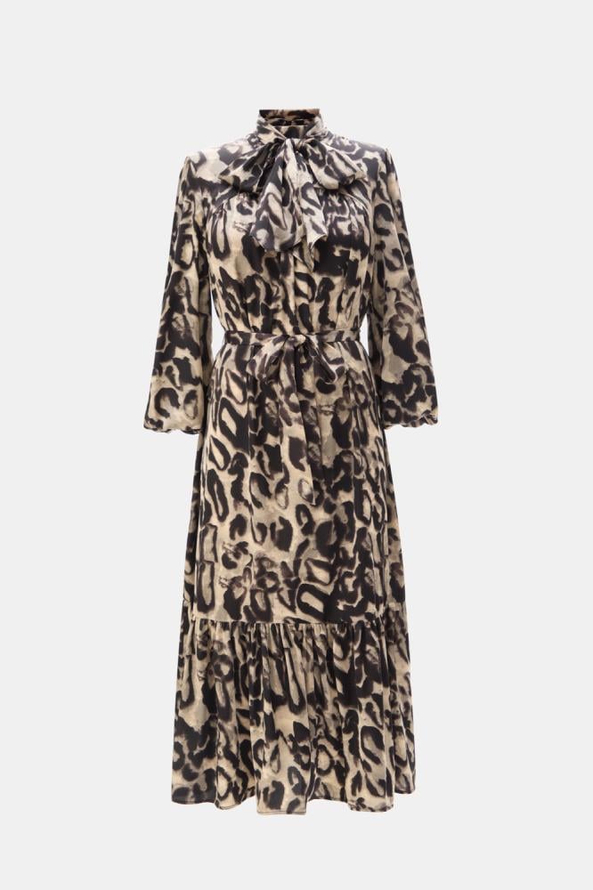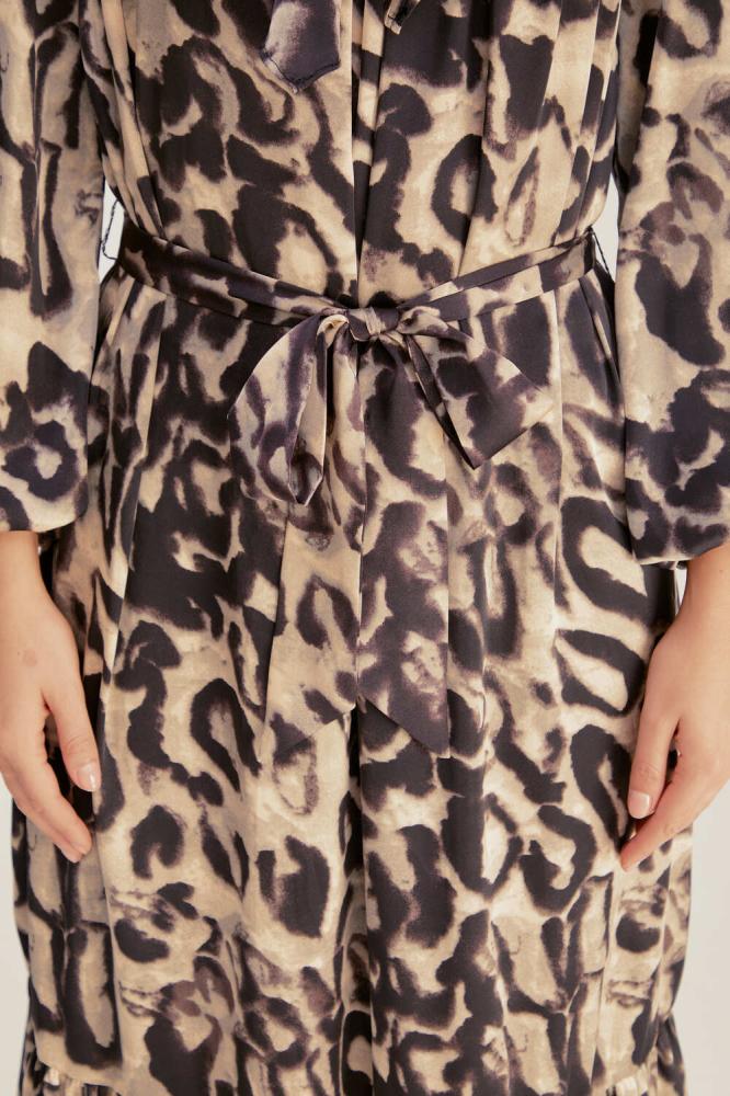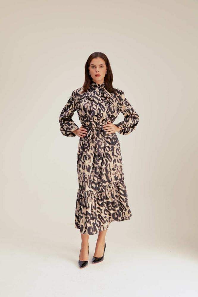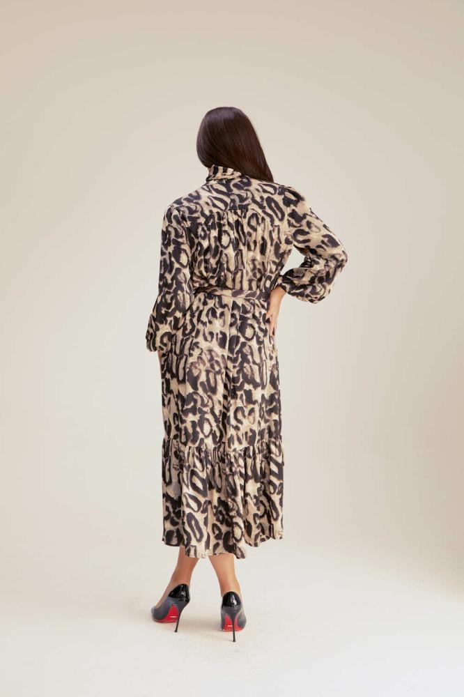 • لون عصري مميز: يتميز فستان بطبعة النمر الذي يمنحه شكل جذاب وملفت يخطف الأنظار.
