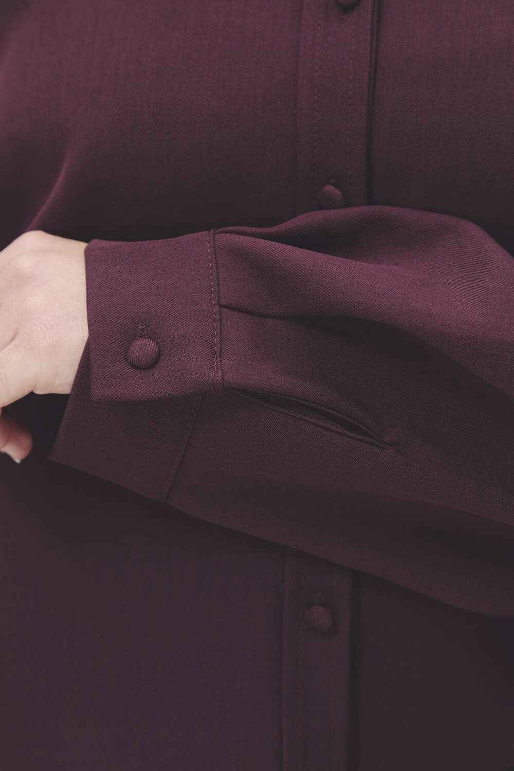 قمبص بتصميم كلاسيكي بسيط يتميز بصف أزرار للإغلاق في الأمام وقصة واسعة ، ويمكن ارتداؤه مع بنطال متناسق