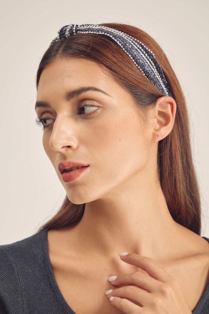 طوق رأس بتصميم أنيق يضفي لمسة راقية على إطلالتك، حيث يتميز بتفاصيل لاعة ويأتي مزين بأحجار براقة ، مثالي لإطلالتك النهارية والمسائية