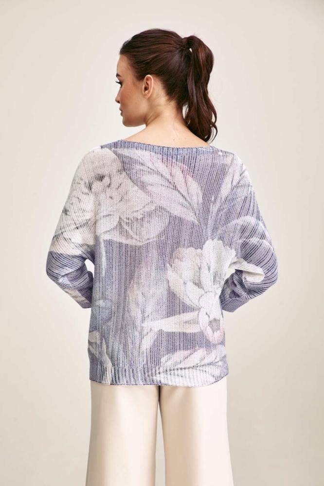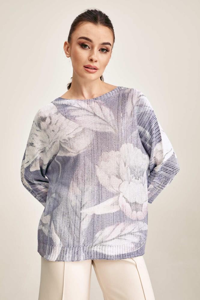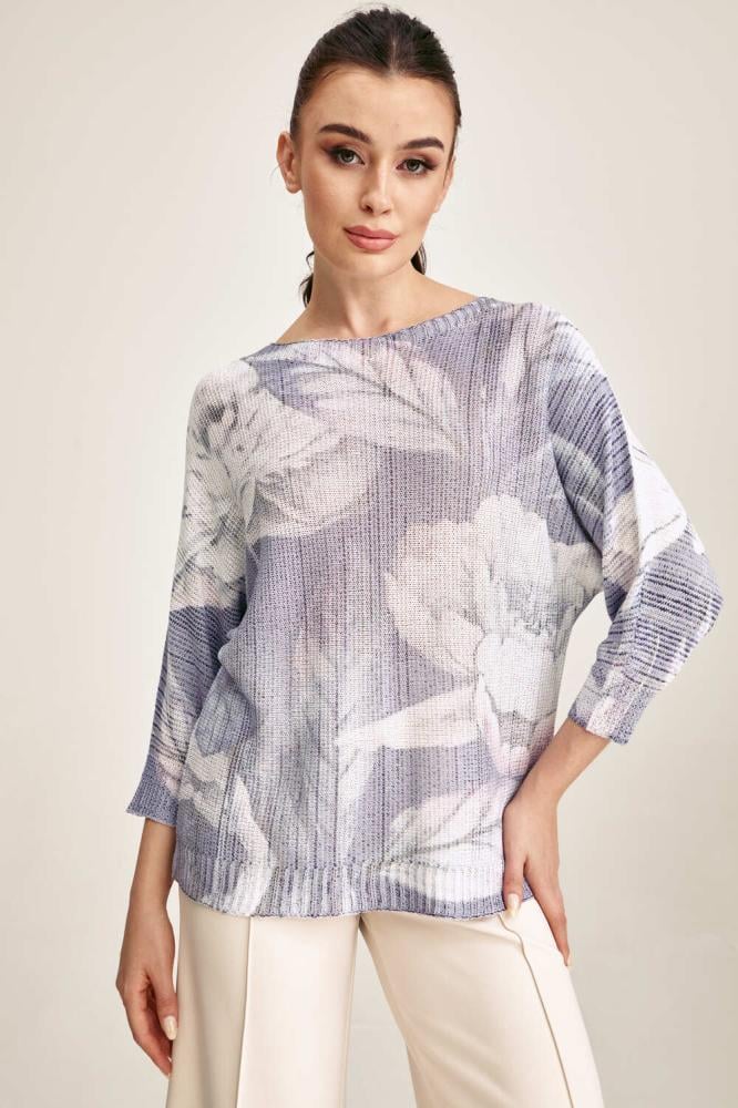 بلوزة محبوكة تنبض بالأنوثة، مزينة بنقوش موردة ناعمة تضيف لمسة من الحيوية والرقي. تأتي بياقة مستديرة وأكمام ثلاثة أرباع، مع قصة فضفاضة تمنحك الراحة والعملية في آنٍ واحد. مثالية لإطلالات العمل