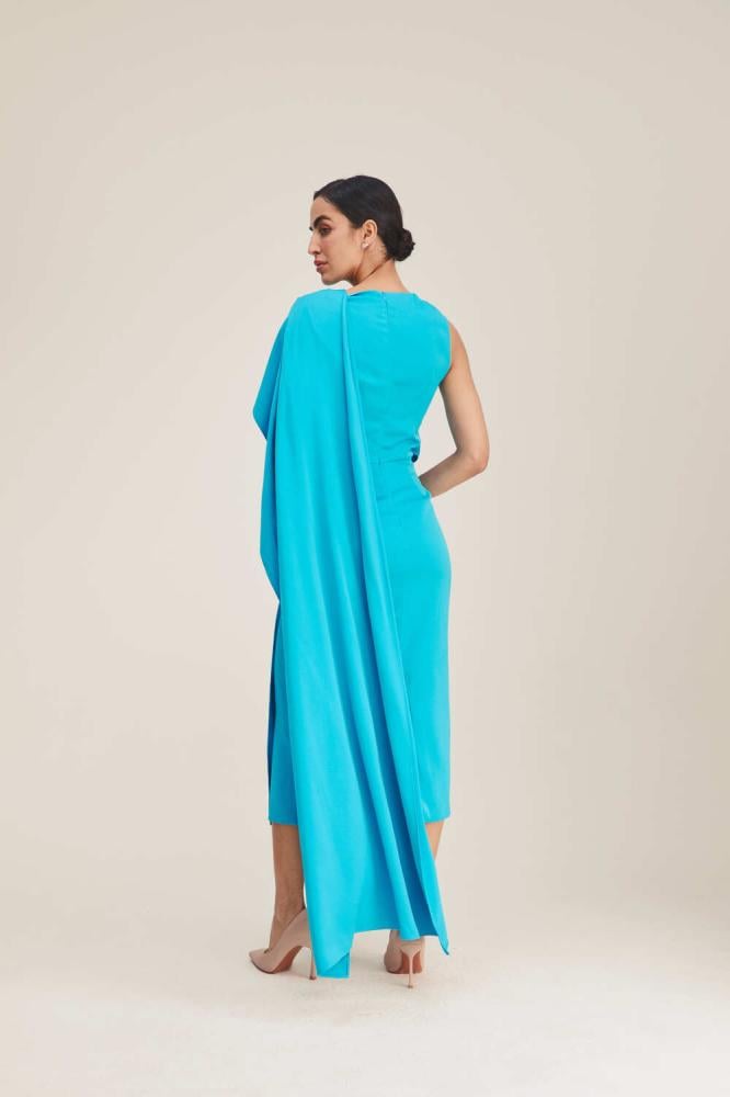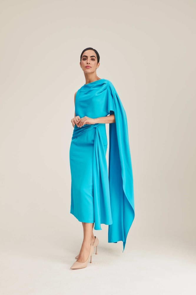 فستان بتفاصيل دقيقة لتنعمي معه بإطلالة خاطفة للأنظار، بقصة جذابة تنسدل بأناقة على الجسم ويتميز بكم واحد طويل منسدل ويتزين بفتحة ساحر من الخلف ، ويعد خيارًا مثاليًا للارتداء في المناسبات الخاصة