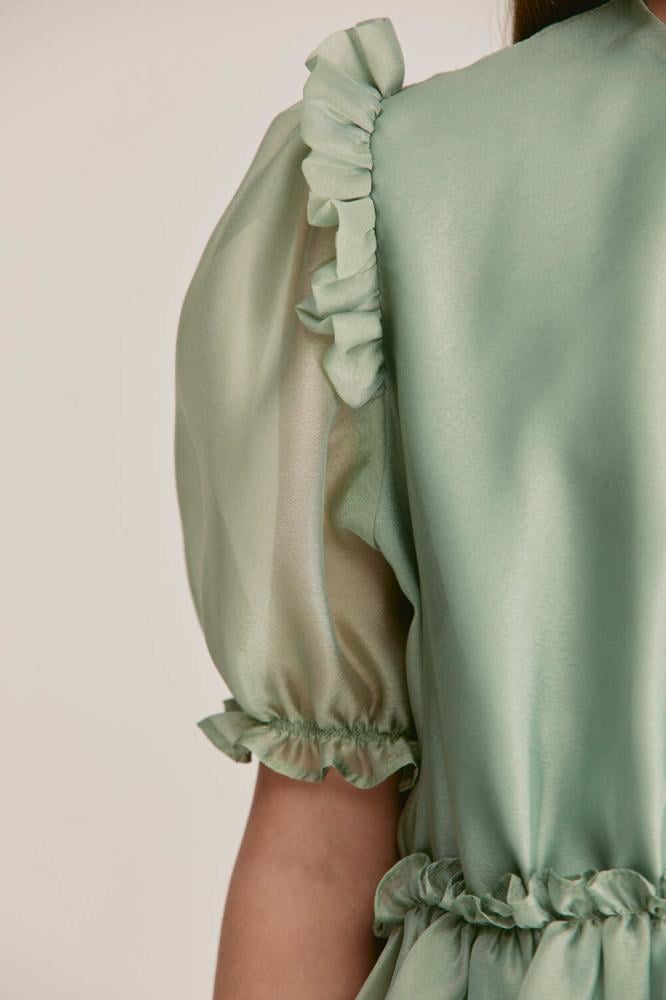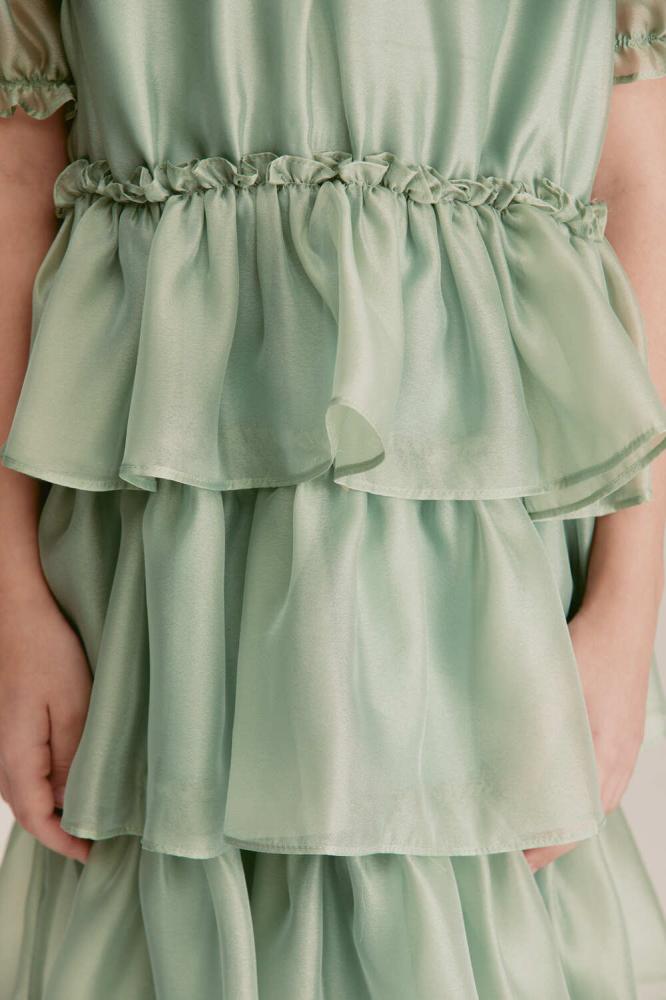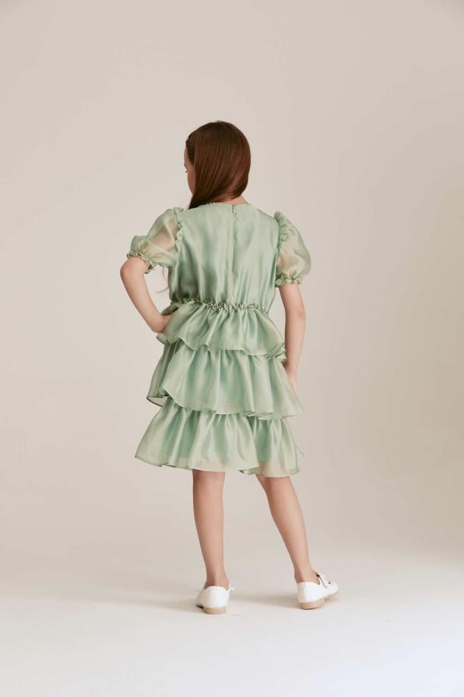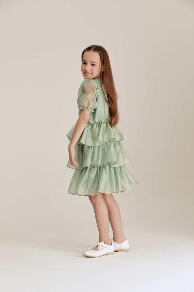 دع صغيرتك تتألق بإطلالة ساحرة مع هذا الفستان بتصميم يجمع بين اللمسة الكلاسيكية والعصرية، حيث تأتي بأكمام منفوخة وخصر مطاطي ، بقصة طبقات كشكش