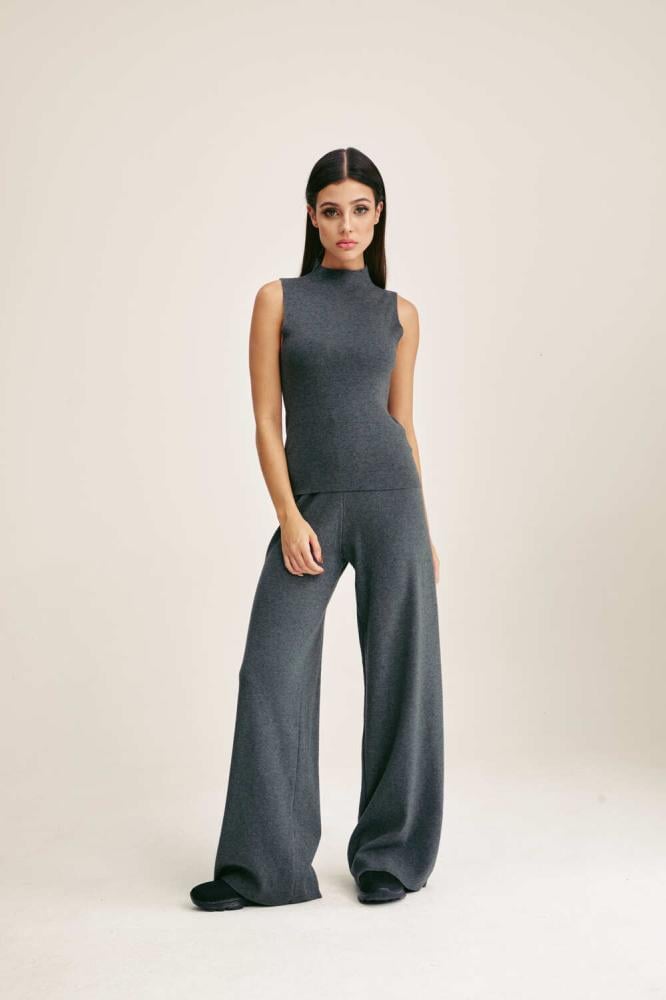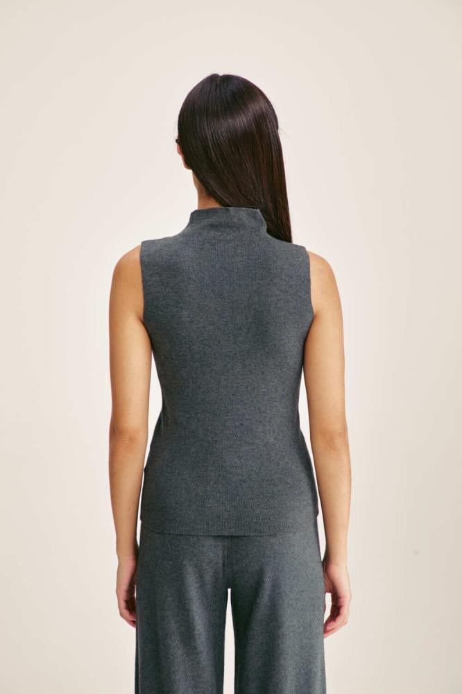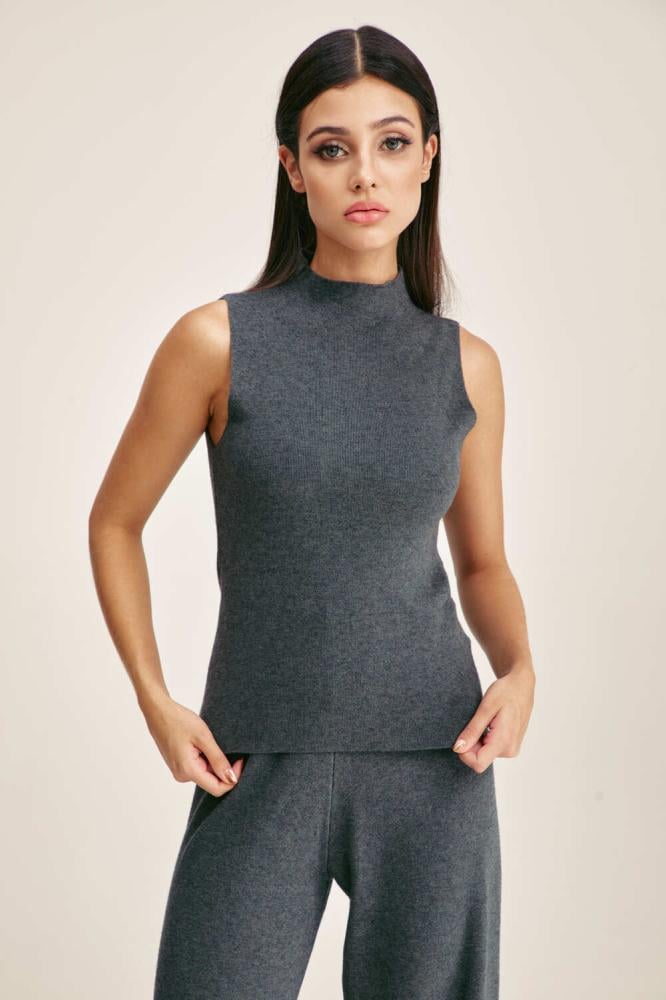 تتميز هذه البلوزة المحبوكة بتصميم بسيط وبياقة عالية وبلا أكمام وتأتي بقصة ضيقة ، مما يجعلها مثالية للإرتداء تحت جاكيت لإطلالة شتوية متكاملة