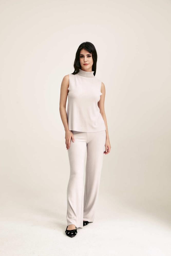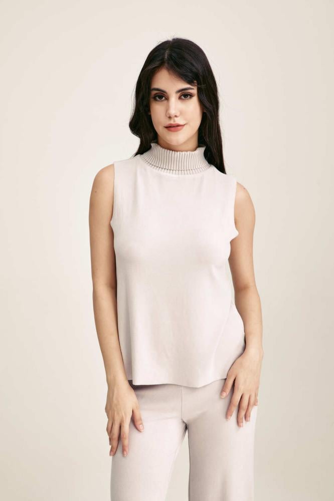 تتميز هذه البلوزة بخامة شتوية دافئة بتصميم بسيط وبياقة عالية وبلا أكمام، مما يجعلها مثالية للإرتداء تحت جاكيت لإطلالة شتوية متكاملة