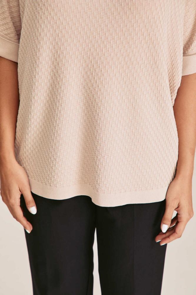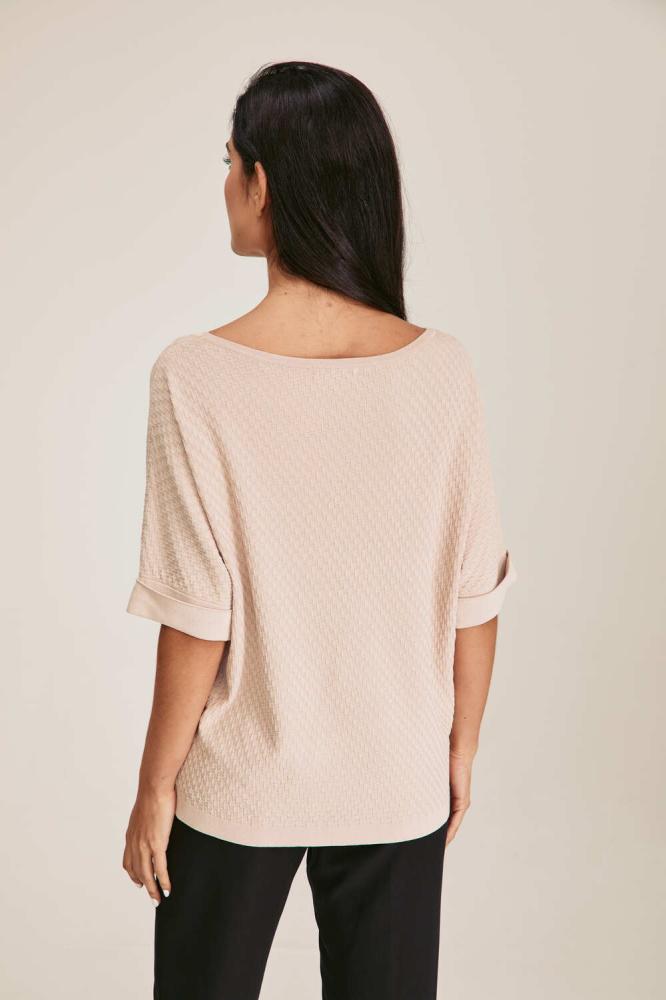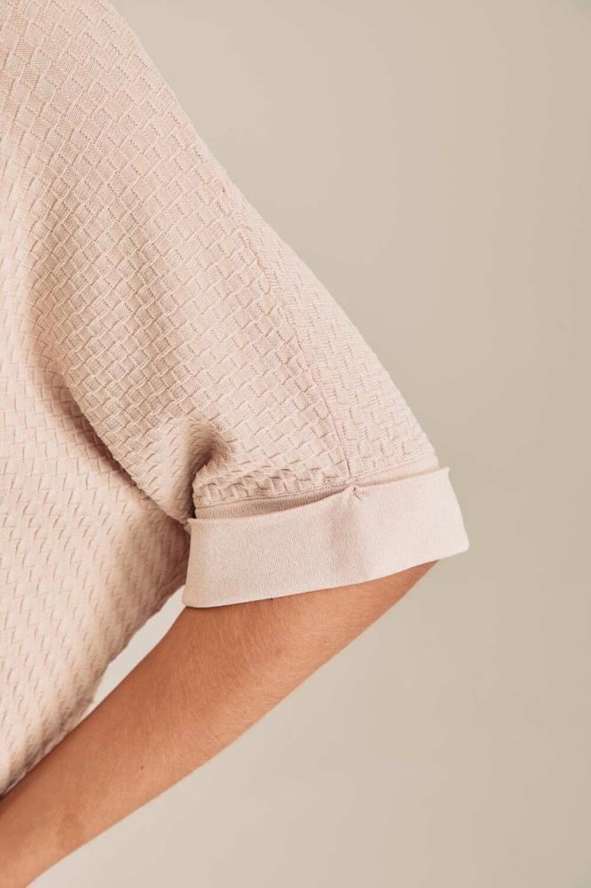 بلوزة محبوكة بتصميم عملي وأنيق، تأتي بياقة واسعة تمنحها طابعًا عصريًا مريحًا، وأكمام قصيرة بثنية تضيف لمسة من التميز والبساطة. بقصّتها الواسعة، تمنحك حرية الحركة وراحة مثالية للارتداء طوال اليوم. خيار مثالي للدوام أو الإطلالات اليومية، وتُنسّق بسهولة مع البناطيل أو تنانير لمظهر أنثوي مرتب.