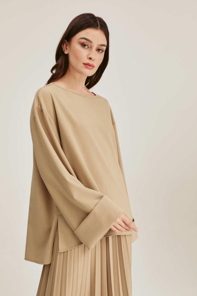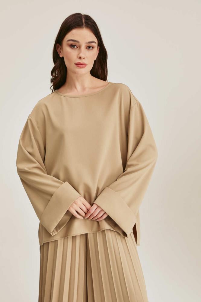 بلوزة واسعة بأكمام بثنية