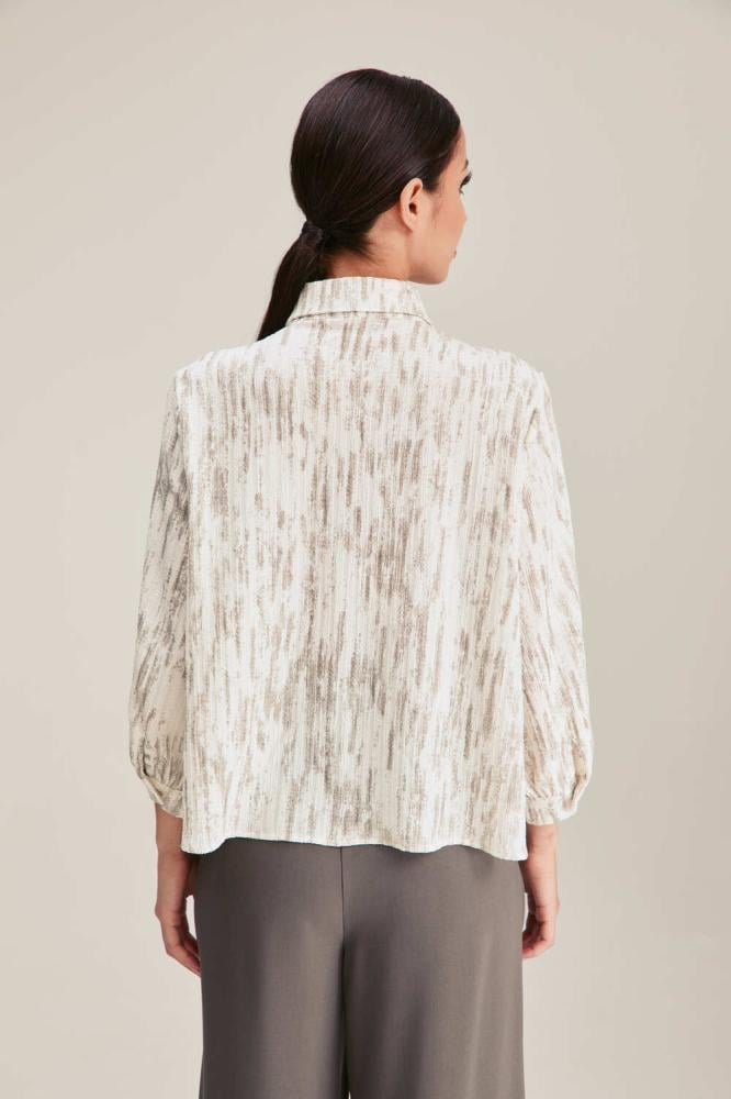 قميص بتصميم كلاسيكي بلمسات أنثوية جذابة،مصمم بياقة مدببة وأكمام متوسطة الطول وأزرار في الأمام للإغلاق، نسقيه مع بعض الإكسسورات البسيطة المناسبة لتحصلي على إطلالة مميزة للعمل.