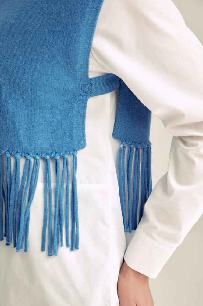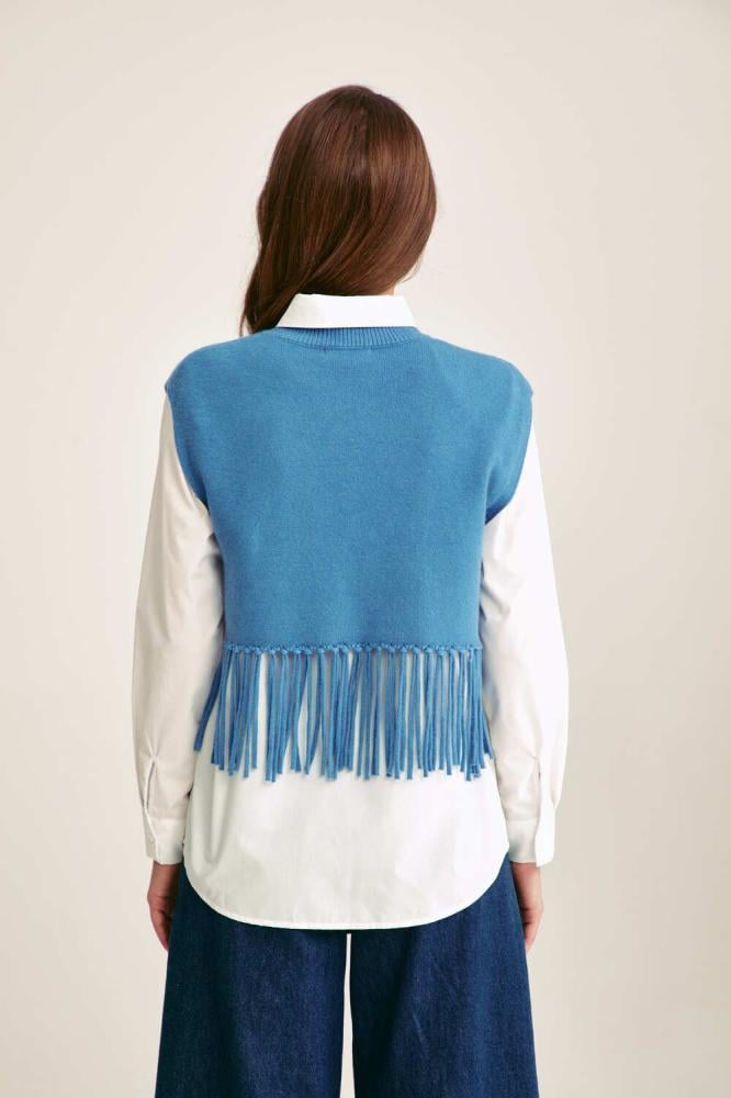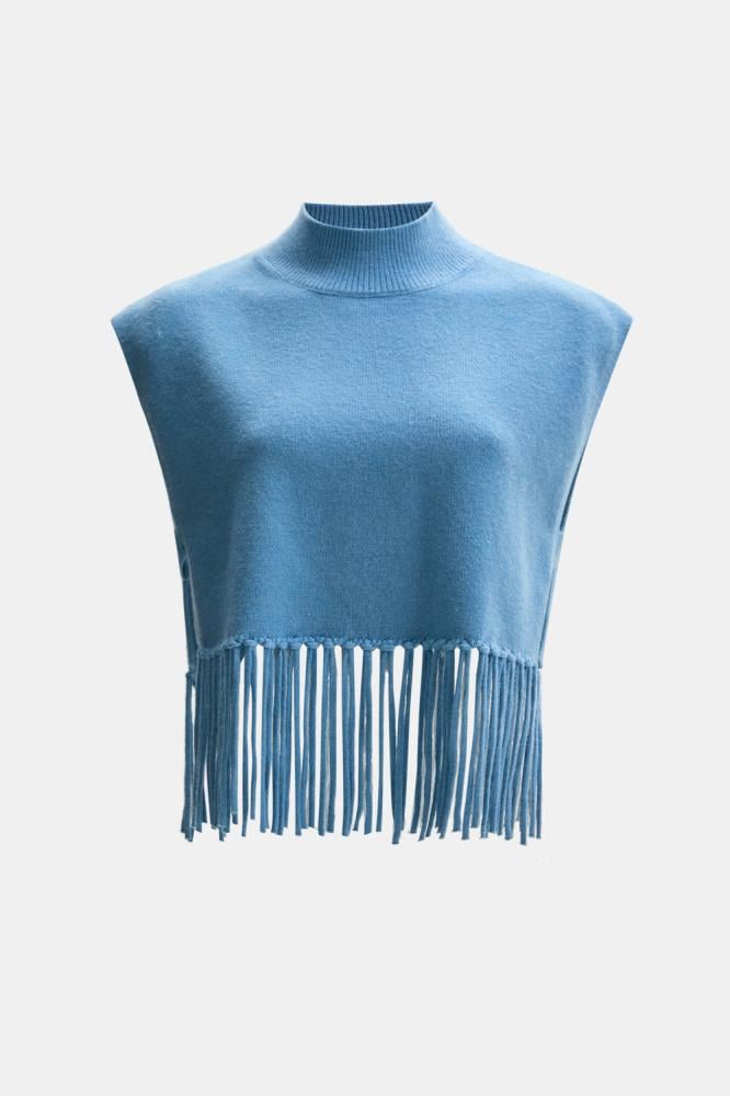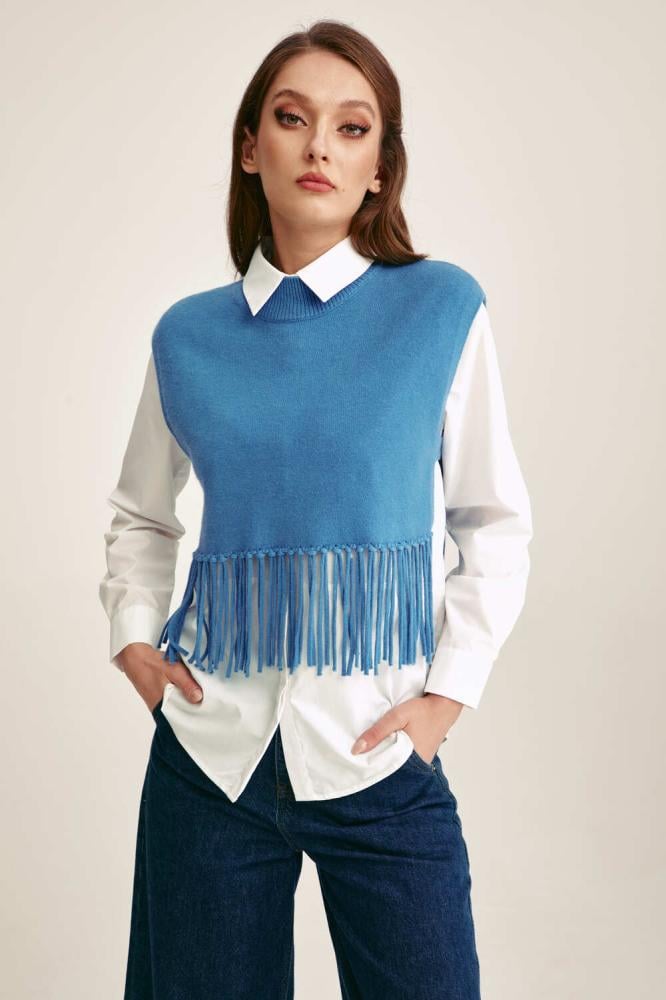 بلوزة محبوكة بلمسة عصرية مبتكرة، بتفاصيل شراشيب تضيف حركة وحيوية لإطلالتك. الياقة الضيقة تمنحك لمسة أنيقة، فيما تضيف الفتحات الجانبية لمسة مميزة. قطعة مثالية للتنسيق مع تنورة أو بنطلون لمظهر متجدد.