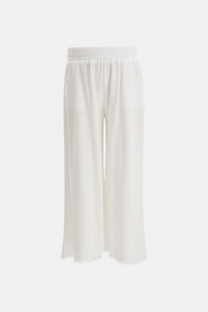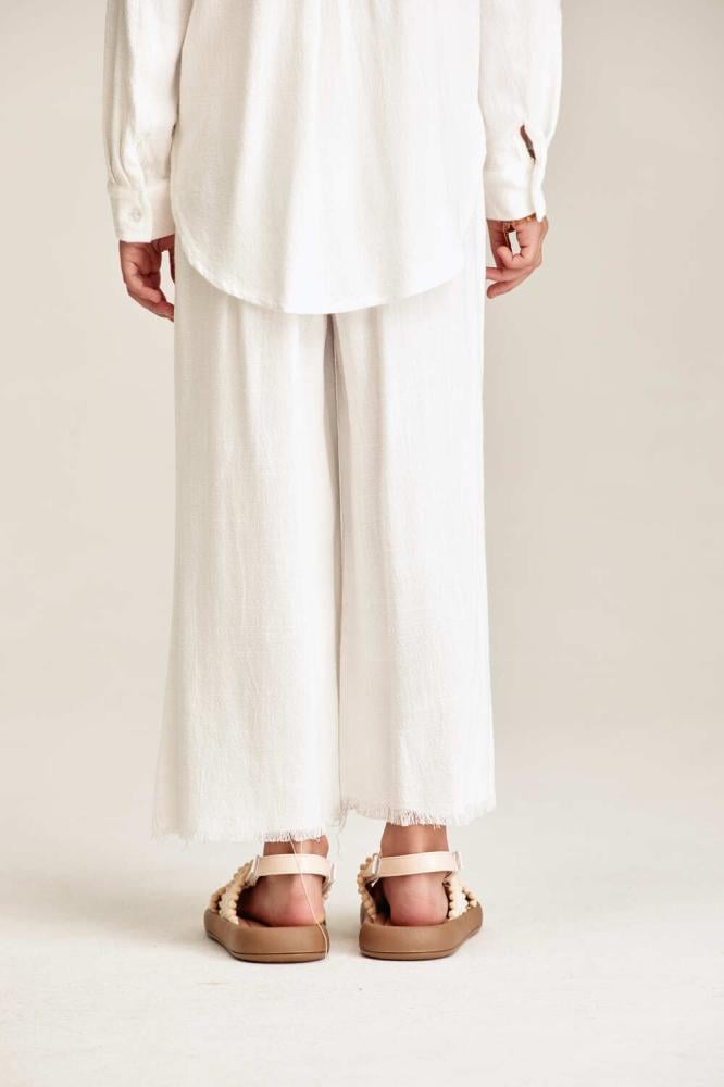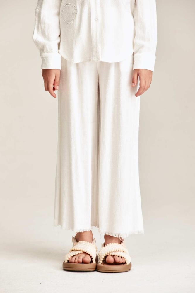اجعلي صغيرتكِ تتألق بإطلالة أنيقة رائعة باقتناء بنطلون بلون سادة بتصميم بخصر مطاطي وقصة مريحة بحواف شراشيب ، نسقيه مع بلوزة مماثلة لمظهر أنيق