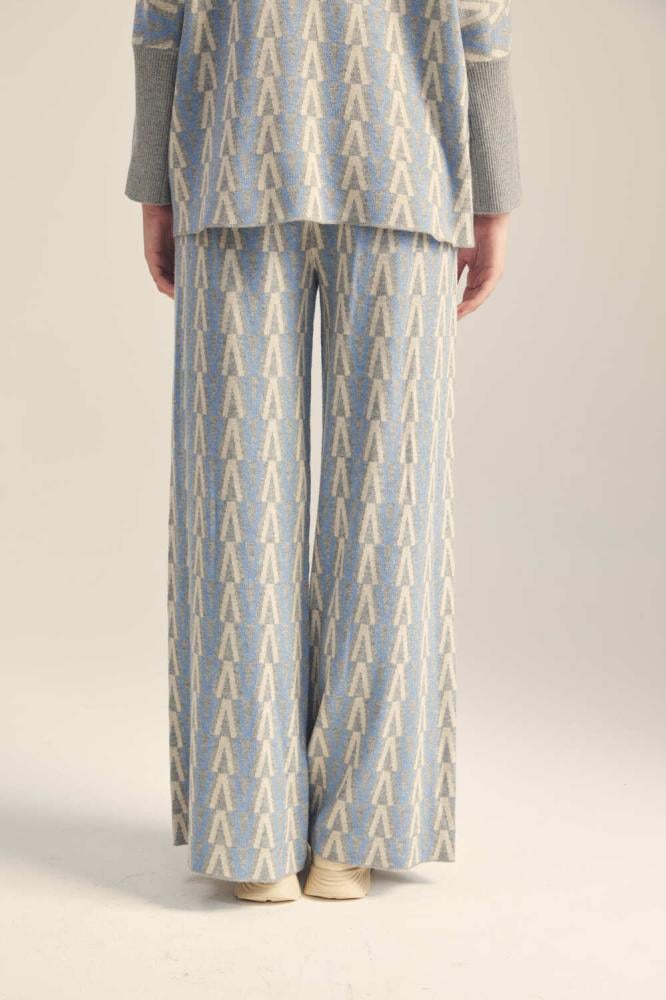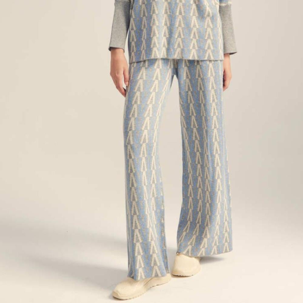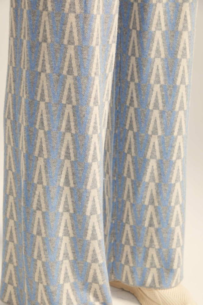 تمتعي بالدفء والأناقة هذا الشتاء وانتقي هذا البنطلون المميز ، مصمم بخامة محبوكة مزينة بنقوش هندسية بخصر مطاطي وبأرجل واسعة ، ارتديه مع بلوزة بتصميم مماثل لمظهر عصري