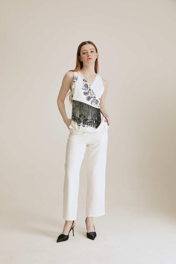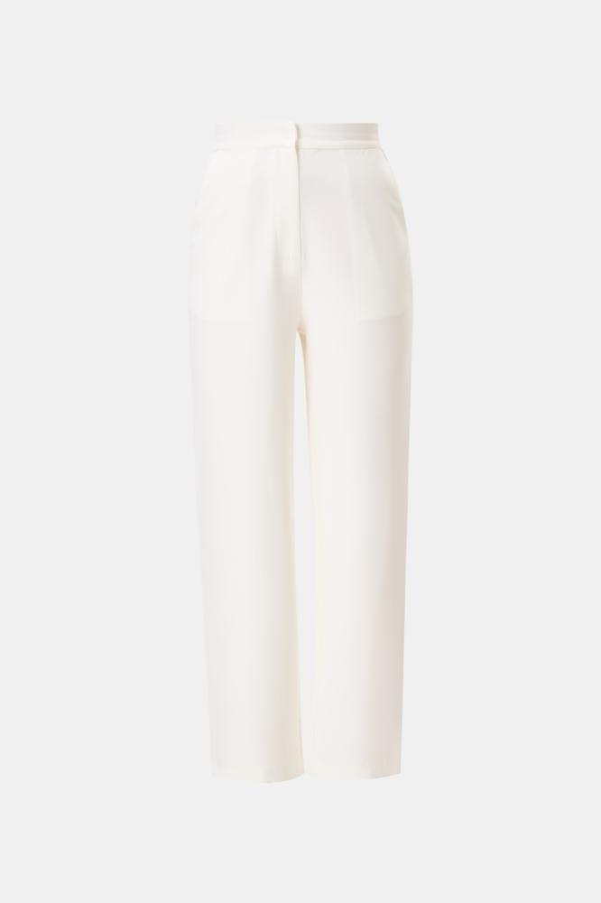 بنطلون أنيق يتميز بخصر عالي وقصة ساق مستقيمة ويأتي بجيوب وسحاب للإغلاق ، ليمنحك مظهرًا كلاسيكيًا أنيقًا ، نسقية مع جاكيت رسمي بلون مماثل لمظهر جذاب