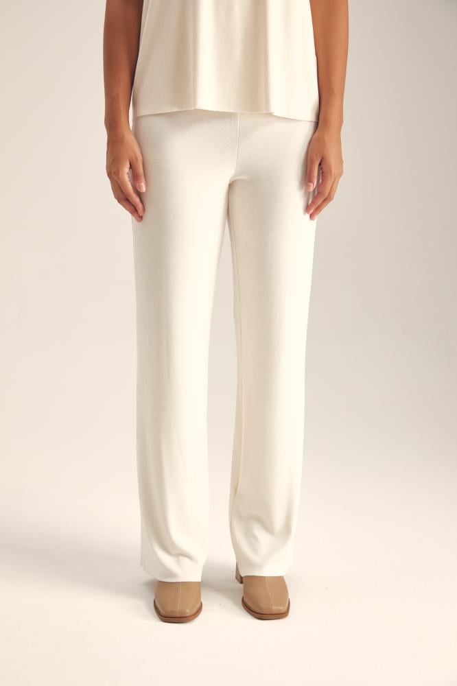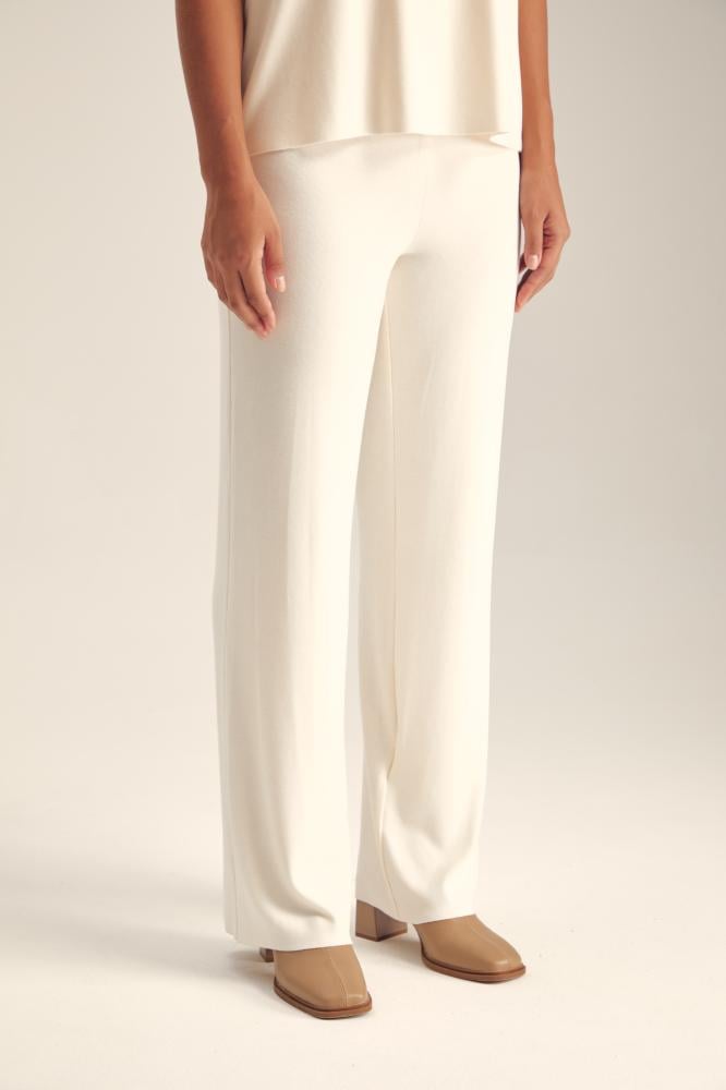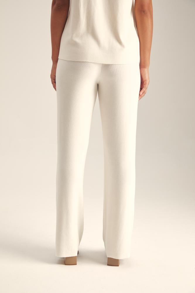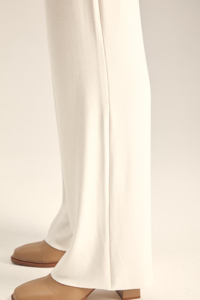 بنطلون محبوك يمنحك الدفء في الأيام الباردة، بتصميم مريح بلون محايد و يتميز بخصر مطاطي وبأرجل واسعة