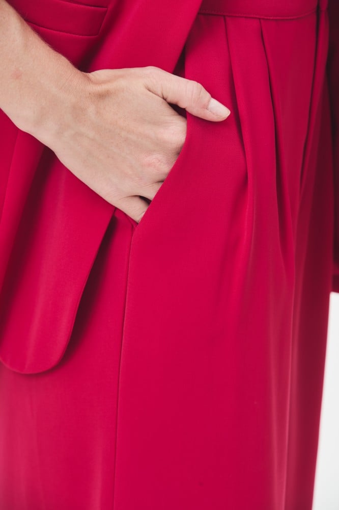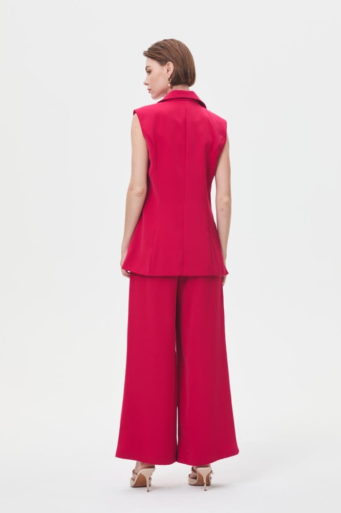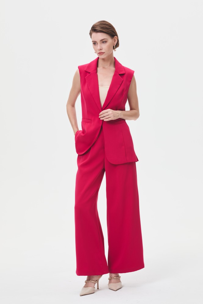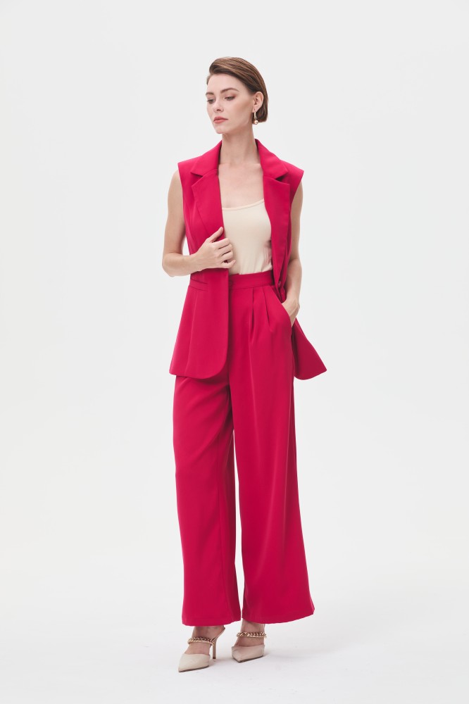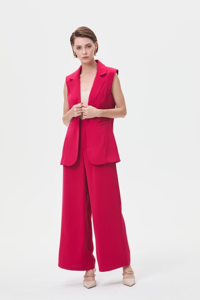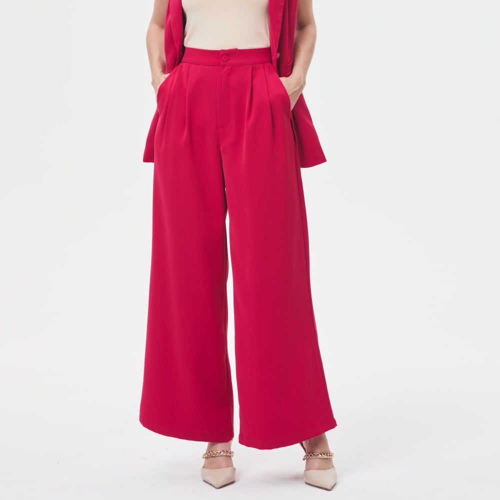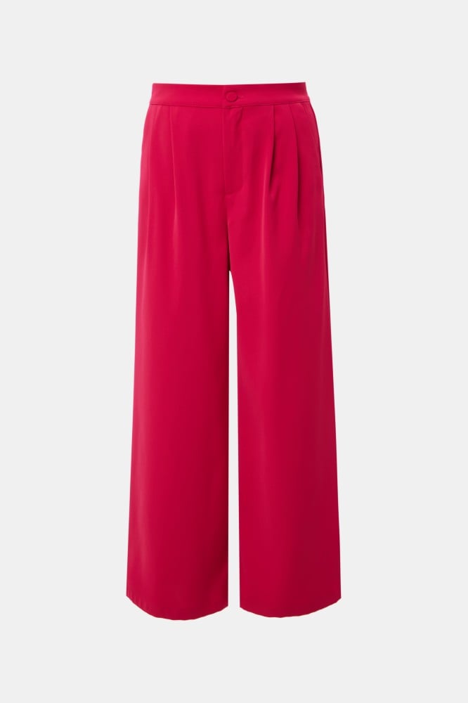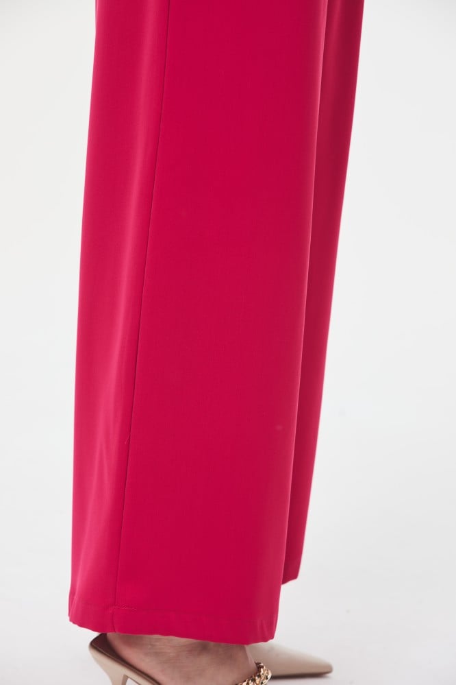 بنطلون بلون سادة و بتصميم كلاسيكي ، يتميز بقصة ساقين واسعتين ليمنحك إطلالة أنيقة ومريحة ويأتي بجيوب و بسحاب مخقي للإغلاق ، نسقيه مع جاكيت لإطلالة جذابة.