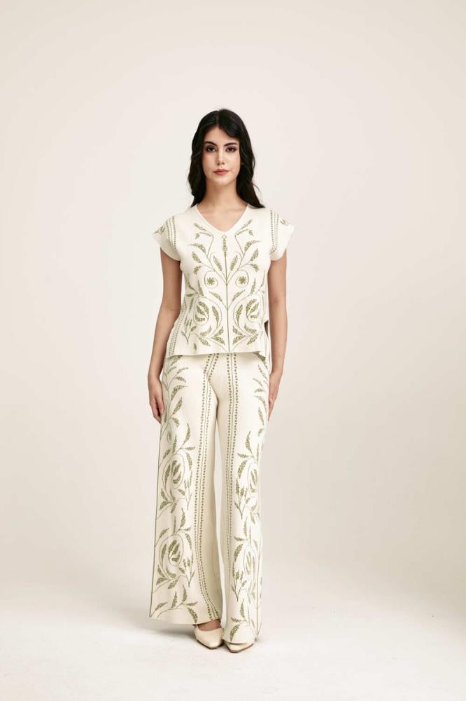 أضيفي هذا البنطلون المميز لمجموعة ملابسك الشتوية وتمتعي بأفضل شعور بالدفء والأناقة أثناء طلعاتك الخارجية في الأجواء الباردة، مصمم بخصر مطاطي وبقصة واسعة ومزين بنقوش موردة ،كما يمكنك تنسيقه كطقم مع بلوزة مماثلة للوك عملي مريح