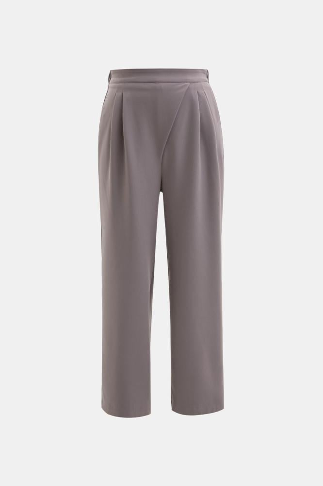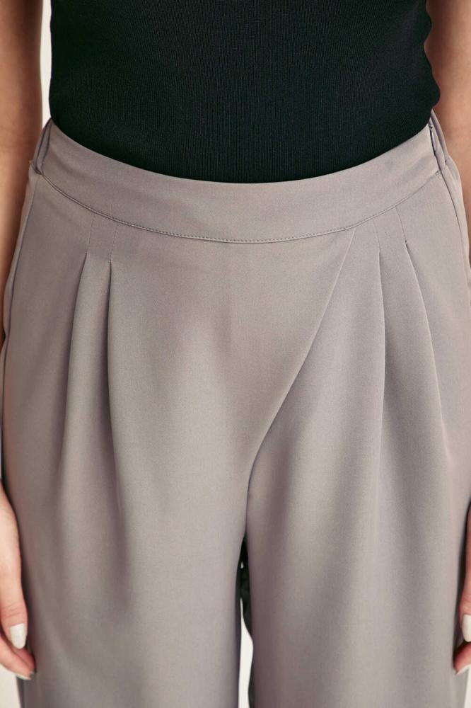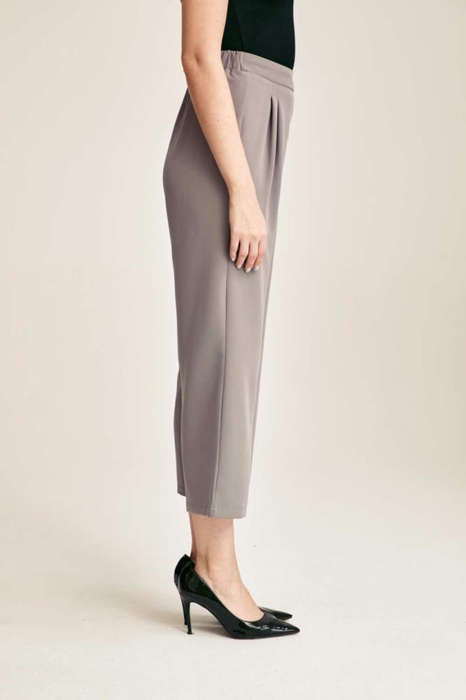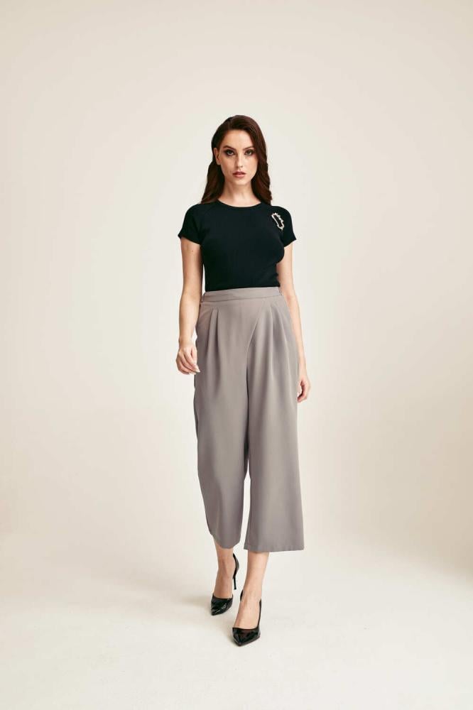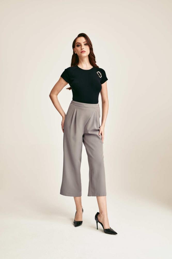 يتميز بنطلون رمادي رسمي بخصر مطاطي يمنحك راحة فائقة طوال اليوم، مع كسرات أمامية تضيف لمسة من الرقي والأناقة الناعمة، بالإضافة إلى تصميمه بقصة مستقيمة تجمع بين العملية والستايل العصري، مما يجعله خيار مثالي لأجواء العمل، حيث يتيح حرية الحركة مع الحفاظ على مظهر رسمي أنيق، كما أنه مصنوع من قماش كريب عالي الجودة ويمتاز بلونه الرمادي الهادئ الذي يسهل تنسيقه مع مختلف القطع، وطوله المتوسط يجعل منه قطعة عملية ومميزة لأي خزانة ملابس أنثوية.