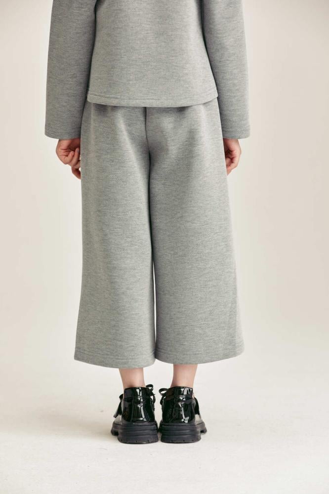 بنطلون بخامة مطاطية ناعمة، خصر مطاطي، وقصة واسعة تمنحها حرية الحركة بأسلوب عصري وأنيق.